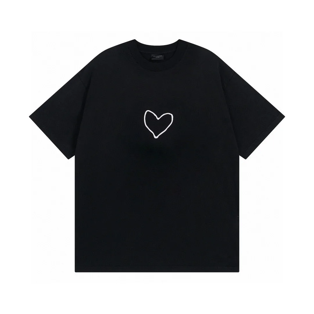 BALENCIAGA/Balenciaga SS Qixi Festival – Kurzarm-T-Shirt mit Herz-Logo-Print in den Farben Washed, Distressed und Distressed – limitierte Auflage