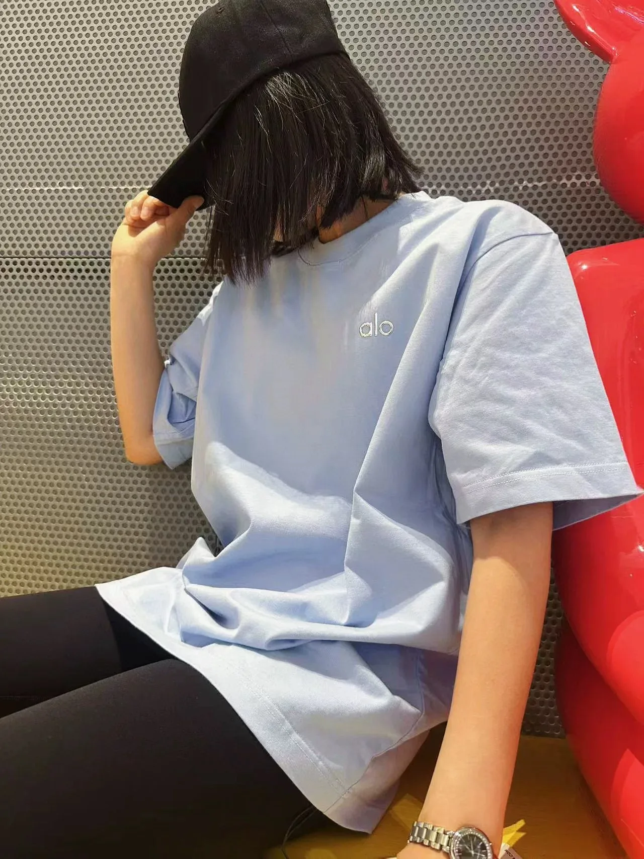 Das neue, lockere, oversized Kurzarm-T-Shirt von ALO aus weicher, bequemer Baumwolle ist schlicht und elegant und vielseitig und modisch.