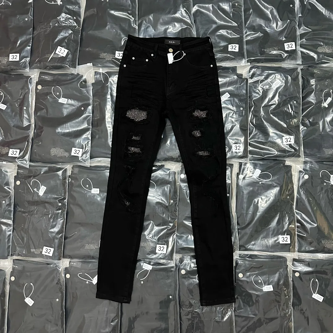 AMIRI Schwarze Jeans mit Strasssteinen. AMIRI High Street Schwarze Basic Ripped Skinny Stretch Jeans. Amiri Schwarze Jeans mit Strasssteinen
