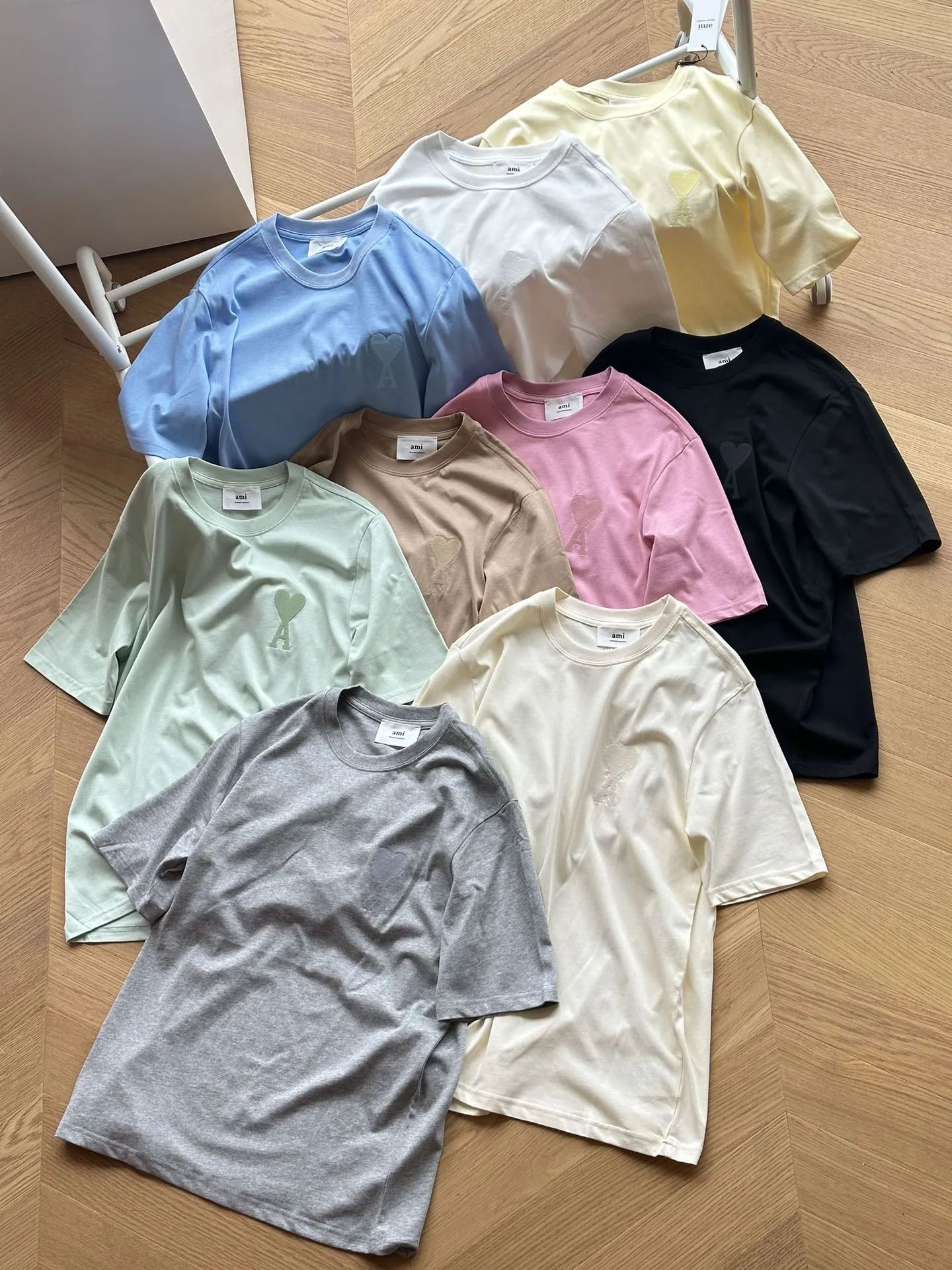 Erhältlich in allen Größen. Ami PS Macarons und farblich abgestimmte Ami de Coeur Kurzarm-T-Shirts mit Stickerei sind in Unisex-Größen erhältlich.