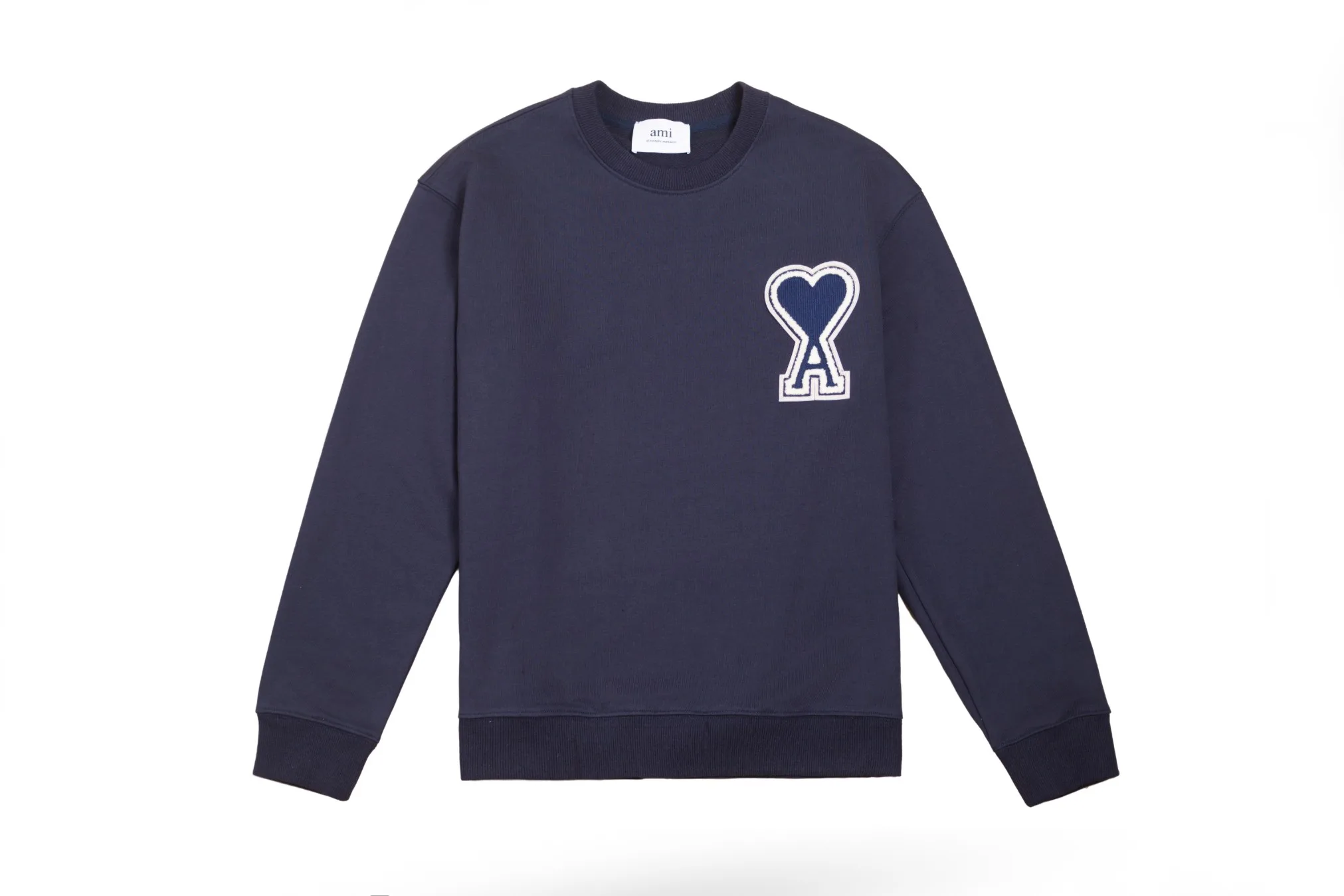 AMIs neuer Herbst-/Winter-Klassiker mit Herz-Emblem und Rundhalspullover. Maßgefertigter Stoff aus reiner Baumwolle. Hochwertiger, neuer Hauptstoff, gewaschen. Unisex-Stil. Farbe: Königsblau. Größen: S–XL.