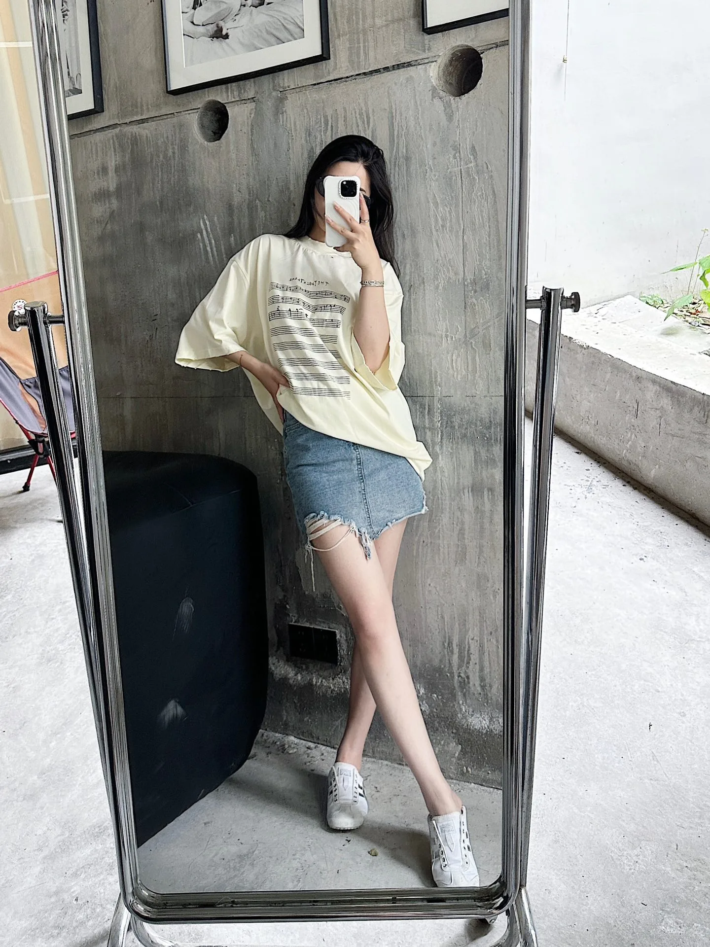 Balenciagas neue Kollaboration mit einem kurzärmeligen T-Shirt mit Musik-Print. Material: Doppelgarn, hochdichte Baumwolle.