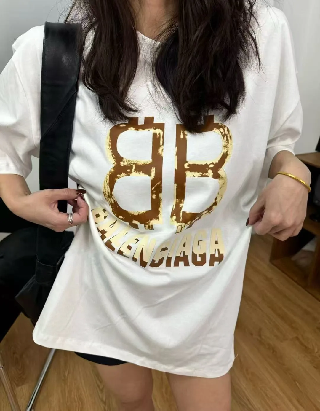 Bestseller Balenciaga Kurzarm Schwarz Print Luxus