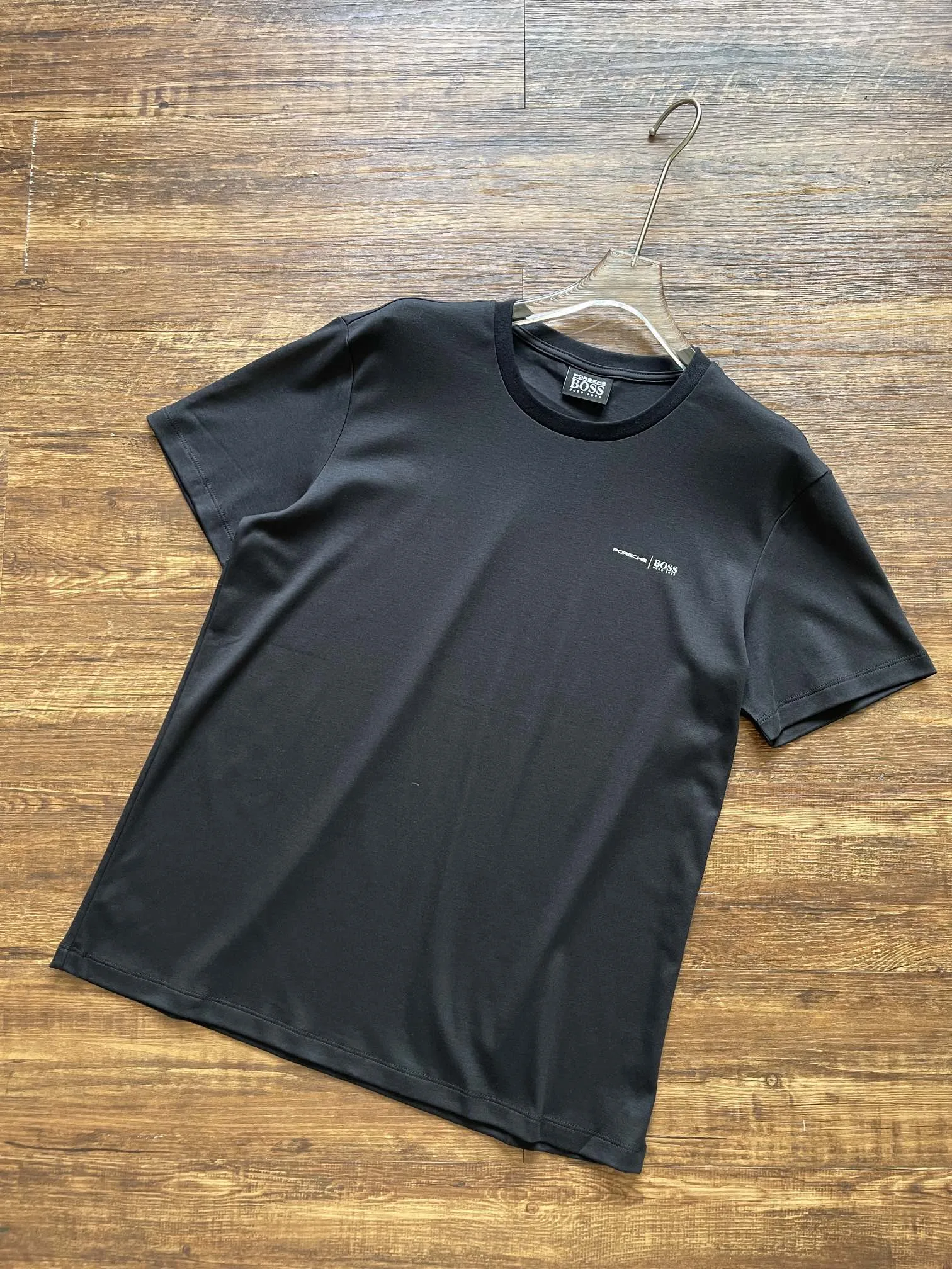 Das neue HUGO Boss Herren-T-Shirt aus Baumwolle mit Rundhalsausschnitt aus der Frühjahr/Sommer-Kollektion der PCHE-Kollaboration. Dieses kurzärmelige Porsche-T-Shirt ist aus weichem Strick gefertigt. Es ist Teil der Porsche x BOSS-Kollaboration und besticht durch Details, die von den legendären Kurven der Porsche-Sportwagen inspiriert sind. Das Markenlogo ist innen und außen zu sehen.