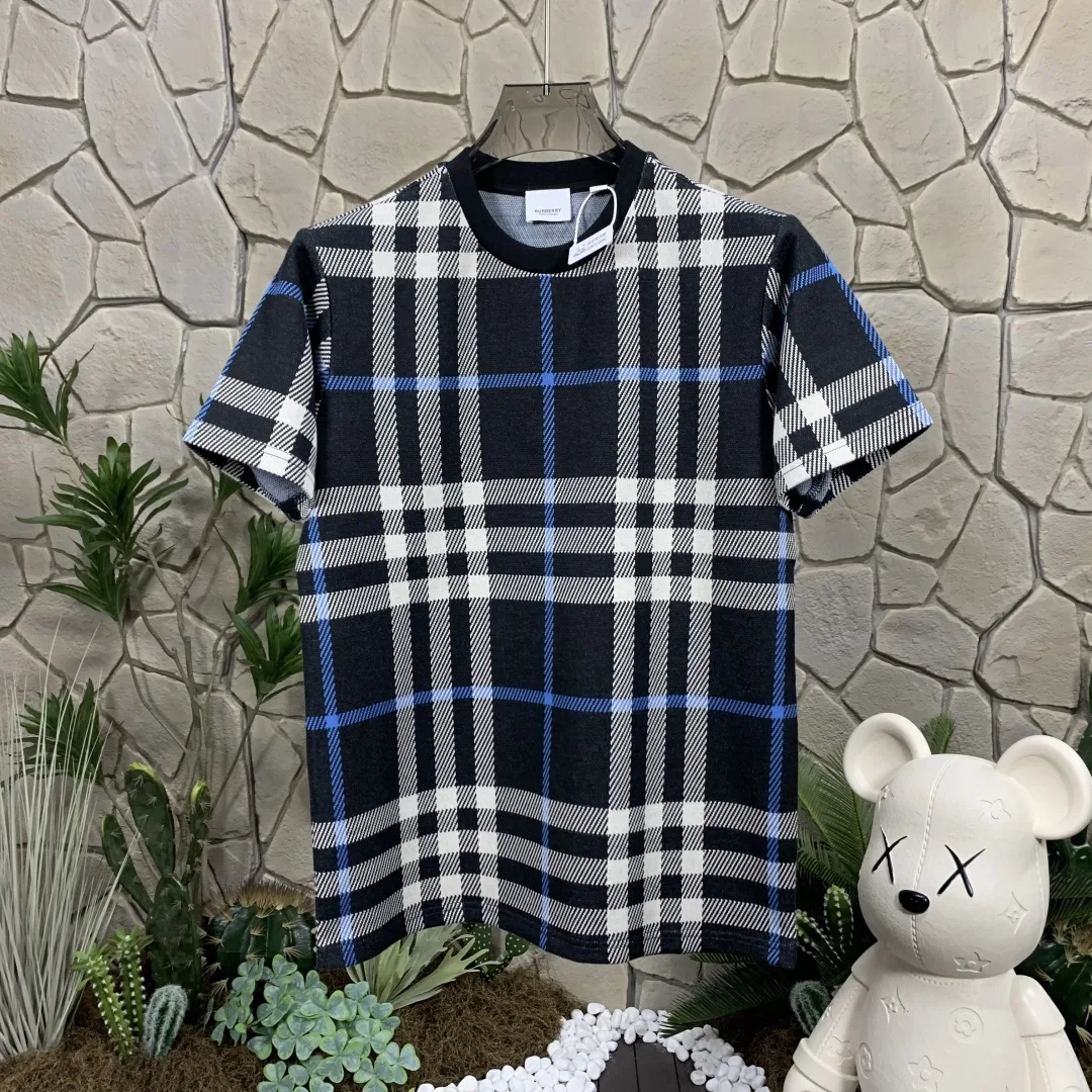 Bestseller Burberry Kurzarm Blau Baumwolle Plaid Luxus