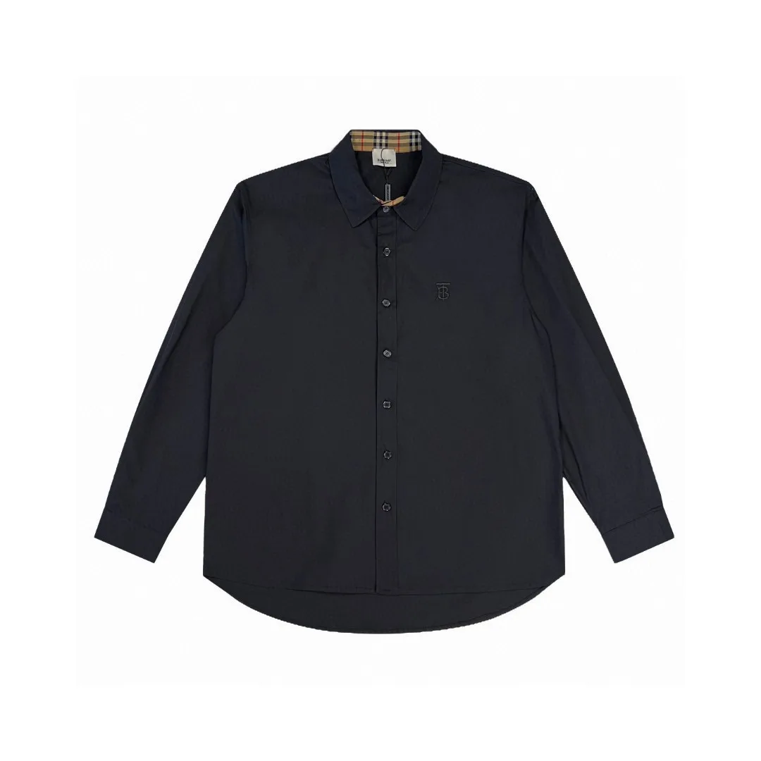 BURBERRY Langarmhemd mit unifarbenem Karomuster und TB-Stickerei.
