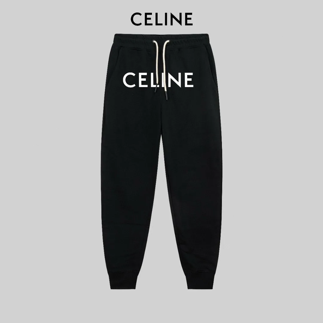 CELINE SS Herbst/Winter Laufstegkollektion. Schmal geschnittene, minimalistische Jogginghose mit Logo. Gewicht: 500 g. Für alle Körperformen geeignet.