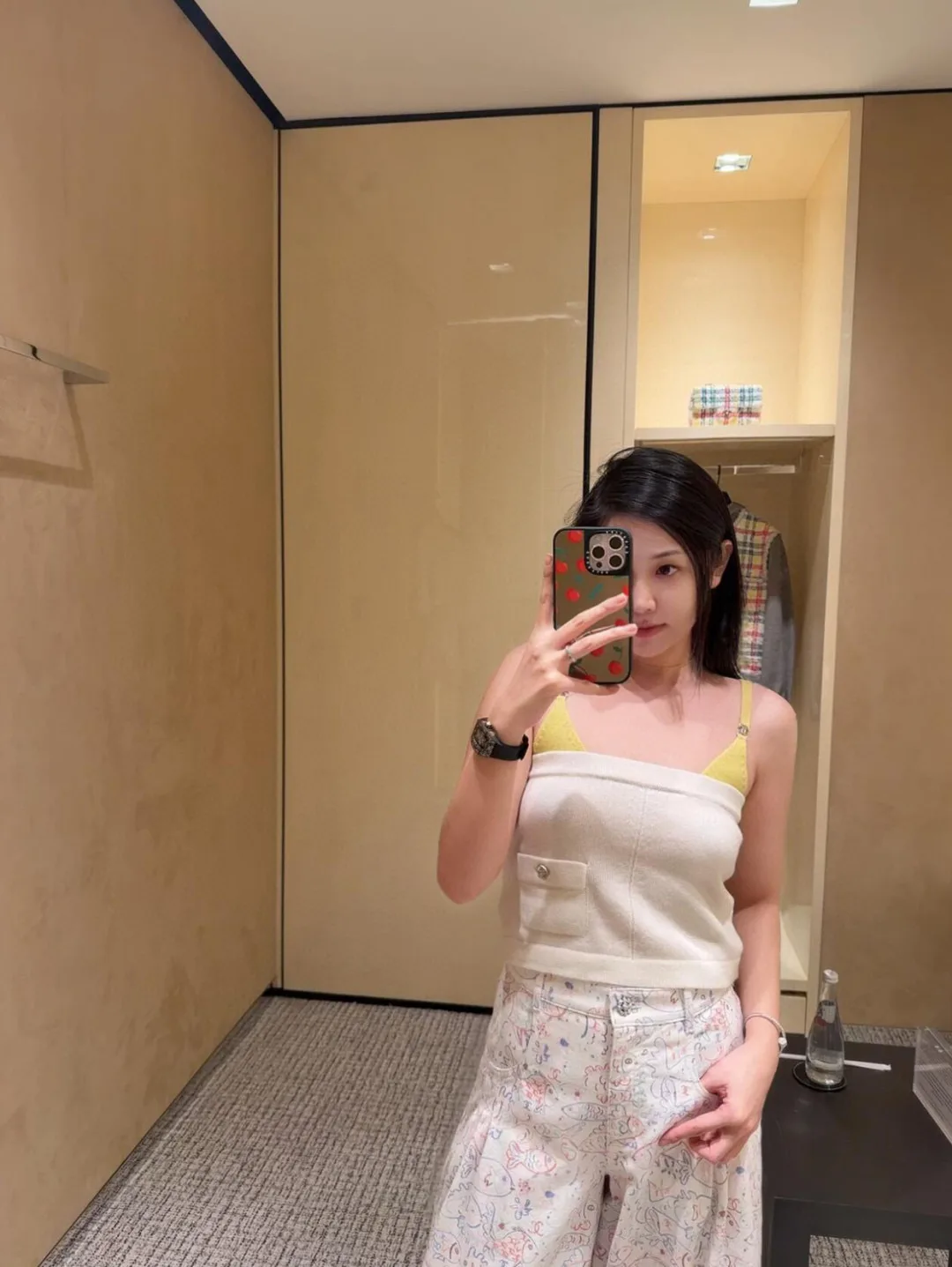 Chanel Custom Strick-Camisole mit Doppel-C-Knopf und Rautenmuster
