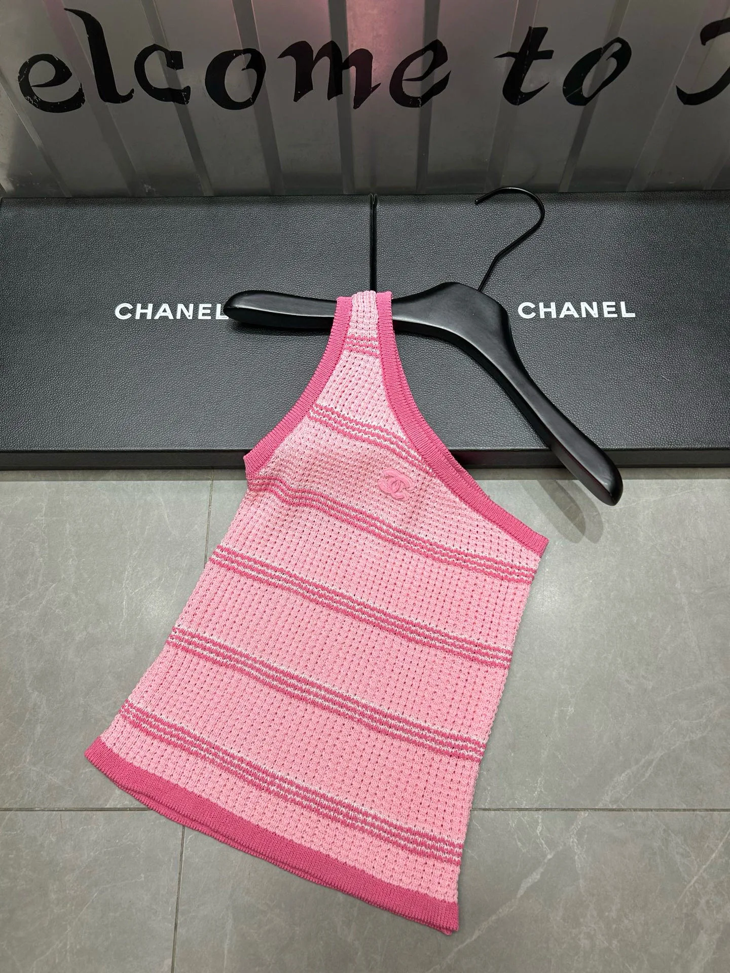 Bestseller Chanel Weste Pink Strick Gestreifte Kollektion
