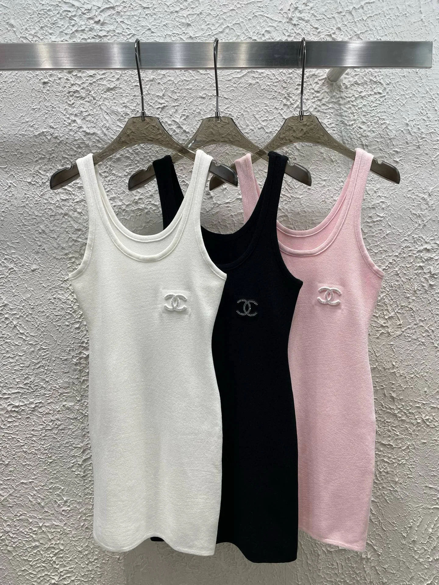 Chanel Strick-Westenkleid mit 3D-Doppel-C-Steinprägung