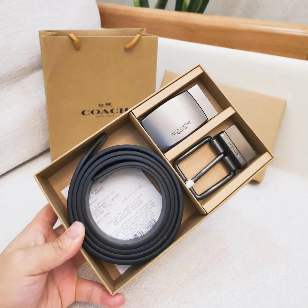 Seriennr.: Coach Echtledergürtel mit Doppelschnalle, doppelseitiger Geschenkbox.