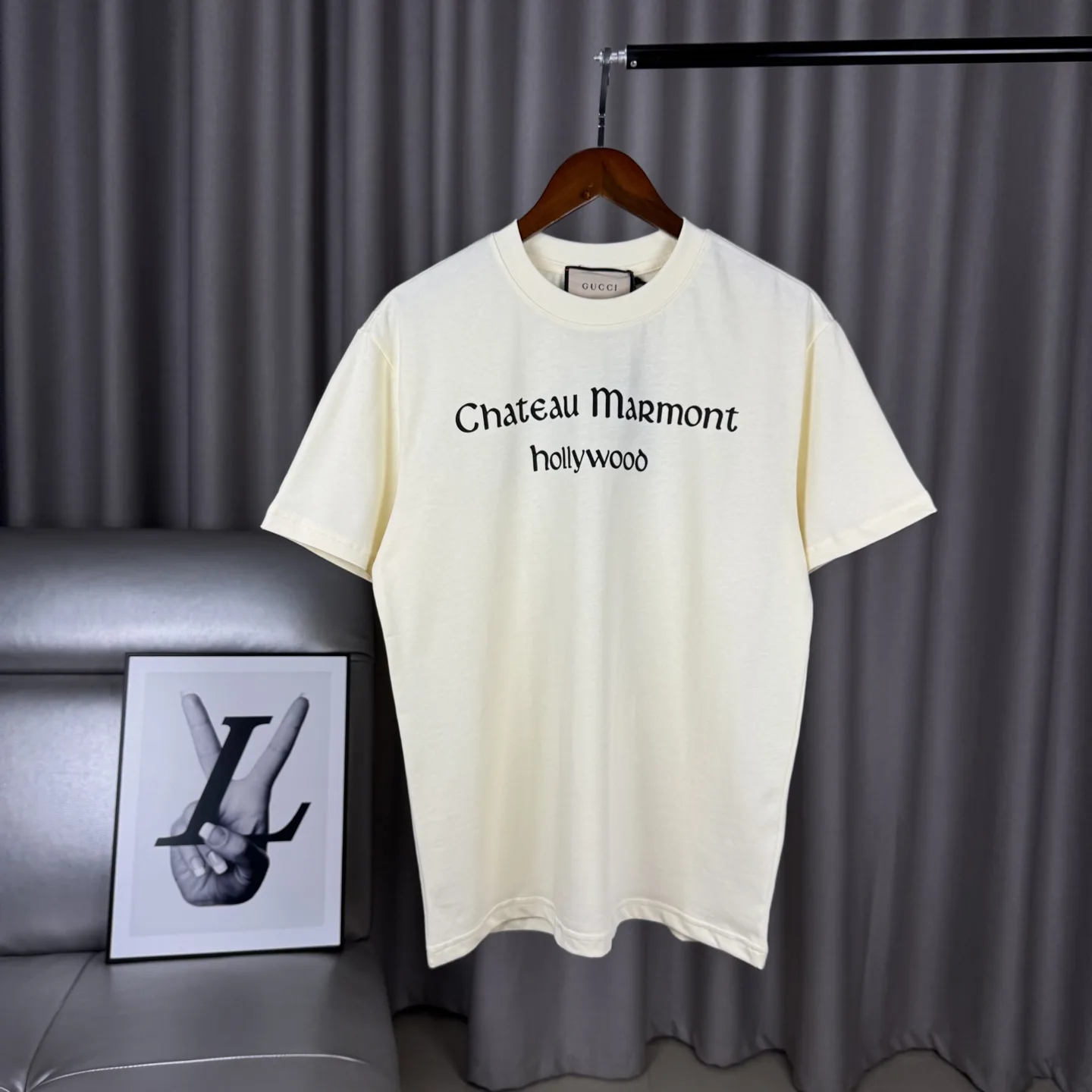 Unisex-T-Shirt mit Rundhalsausschnitt und aufgedrucktem Gucci-Monogramm-Logo und Lilien auf der Rückseite