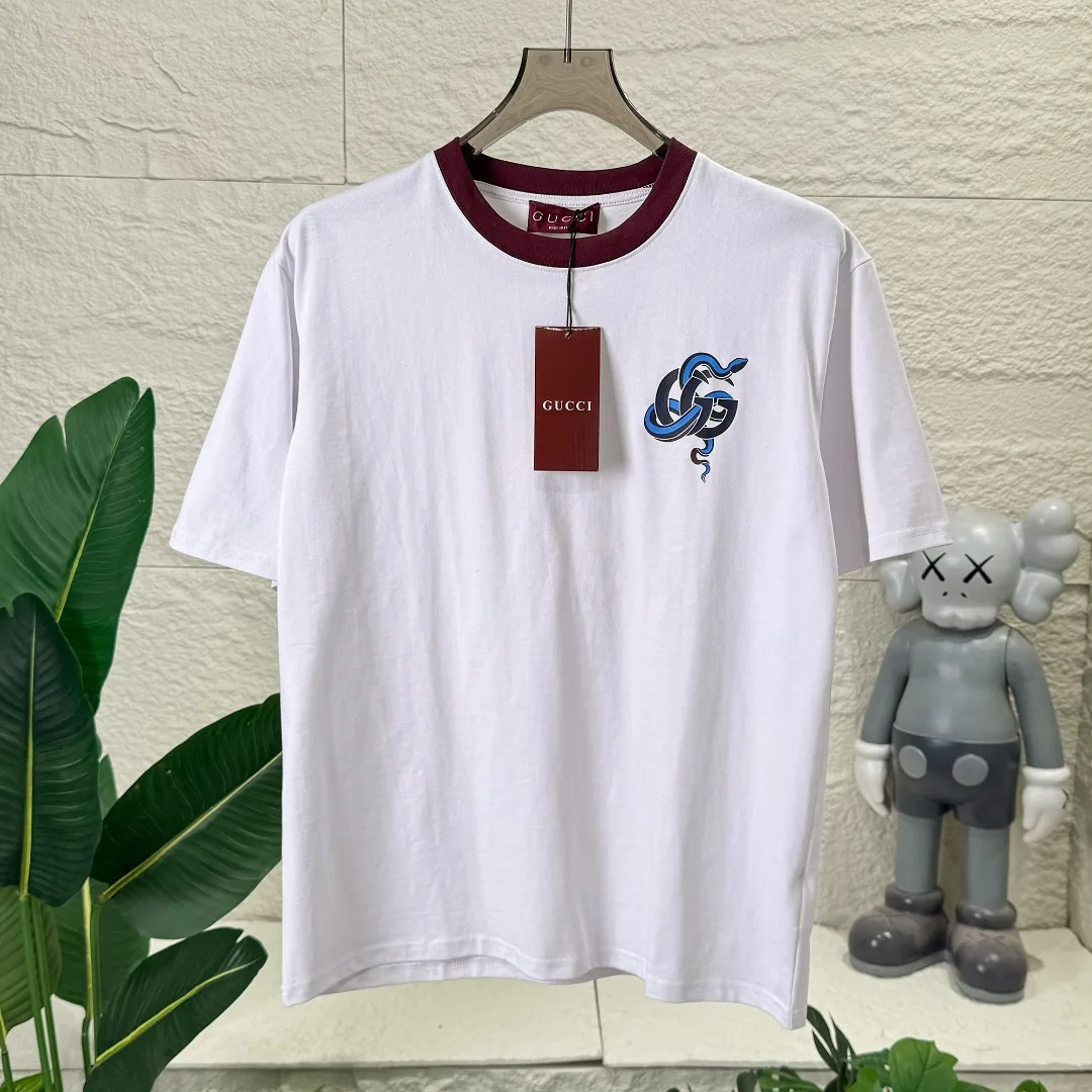 Das kurzärmelige, locker sitzende Unisex-Pullover-T-Shirt „Year of the Snake“ von GUCCI/Gucci in limitierter Auflage mit Rundhalsausschnitt ist die perfekte Wahl für Paare. Sie suchen ein romantisches und stilvolles Date Dann ist dieses GUCCI T-Shirt die perfekte Wahl! Der exklusive „Year of the Snake“-Print ist einzigartig und romantisch und erzählt eine süße Geschichte. Die lockere Passform ermöglicht uneingeschränkte Bewegungsfreiheit bei Ihrem Date, egal ob beim Abendessen, im Kino oder beim Shoppen. So können Sie Ihre gemeinsame Zeit in vollen Zügen genießen, ohne sich eingeschränkt zu fühlen. Die einfarbige Farbe in Kombination mit dem klassischen Print sorgt für einen schlichten und dennoch stilvollen Look. Kombinieren Sie es mit passenden Schuhen für einen süßen und einladenden Look. Tragen Sie dieses T-Shirt und Sie werden das süßeste Paar der Straße sein, das mühelos Ihren einzigartigen Charme zur Schau stellt und bleibende Erinnerungen schafft.