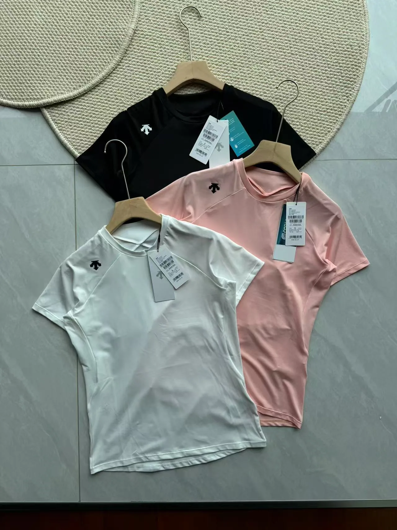 Damen! Hochwertiges, dreifarbiges DESCENTE Damen-Kurzarm-T-Shirt mit Rundhalsausschnitt. Die Verarbeitung ist durchgängig aufwendig geschnitten und vernäht. Abbildung im Geschäft zum Vergleich. Das Silikon-Logo und die schmale Passform an der Taille sorgen für einen schmeichelnden, schlank machenden Look. Ein klassisches, sommerliches, schnelltrocknendes Damen-T-Shirt aus merzerisierter Baumwolle mit kleinem Logo. DESCENTE Spezial-Kurzarm-T-Shirt mit Rundhalsausschnitt für Damen! Hergestellt mit modernster Schnelltrocknungstechnologie! Äußerst feuchtigkeitsableitend, dehnbar und schnelltrocknend – bequem, glatt und hautfreundlich! Hergestellt aus speziell angefertigtem, schnelltrocknendem Material, unglaublich kühl und bequem. Hochwertige Qualität. Ein Must-have für den Sommer – verpassen Sie es nicht! Der Stoff ist seidig, trocken und echt. Absoluter Wert. Alle LOG-Teile am Körper sind umweltfreundlich, schnell trocknend, atmungsaktiv und schweißabweisend bei hohen Temperaturen. Weitere Grundfunktionen sind verfügbar. Es eignet sich für den täglichen Sport, die Freizeit und Spaziergänge im Freien. Schwestern, die es mögen, sollten es nicht verpassen.