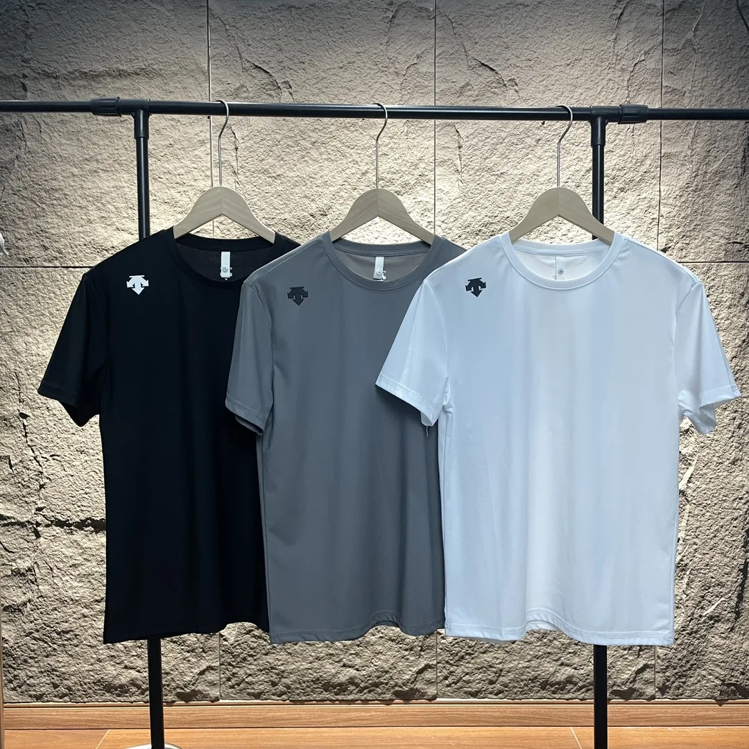 DESCENTE Basic Silikon-Logo, hochelastisches, schnelltrocknendes Kurzarm-T-Shirt aus Eisseide
