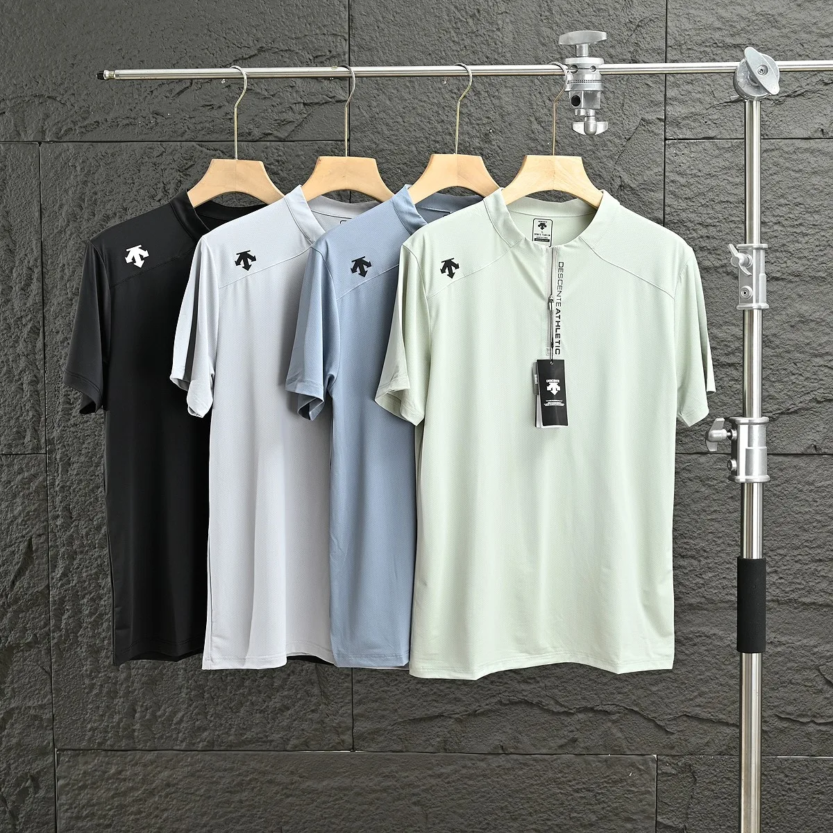 DESCNTE Herren-P-Shirt mit halblangem Reißverschluss und Wabenstruktur, schnelltrocknend.