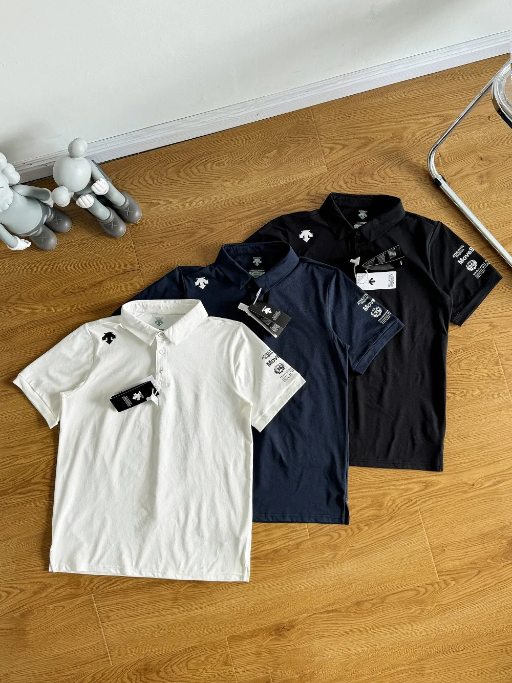 DESCENTE Unisex Sommer-T-Shirt mit einfarbigem Logo und Revers, kurzärmlig