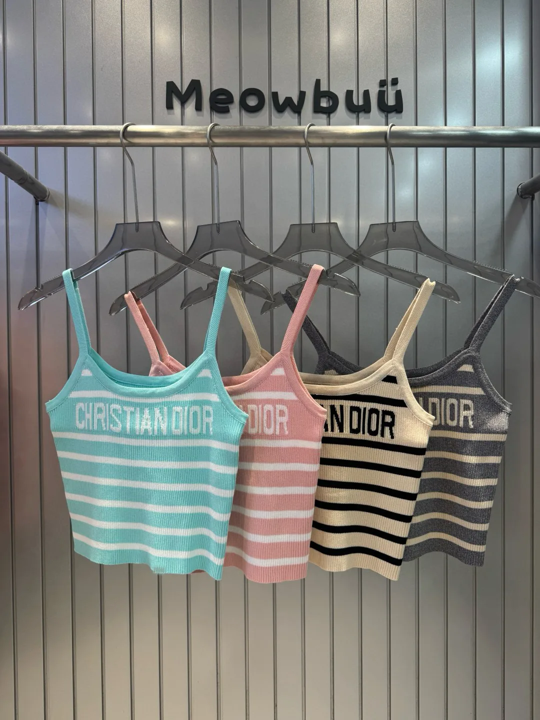 Dior-Monogramm-Jacquard-Stricktop mit Streifen vorne und hinten