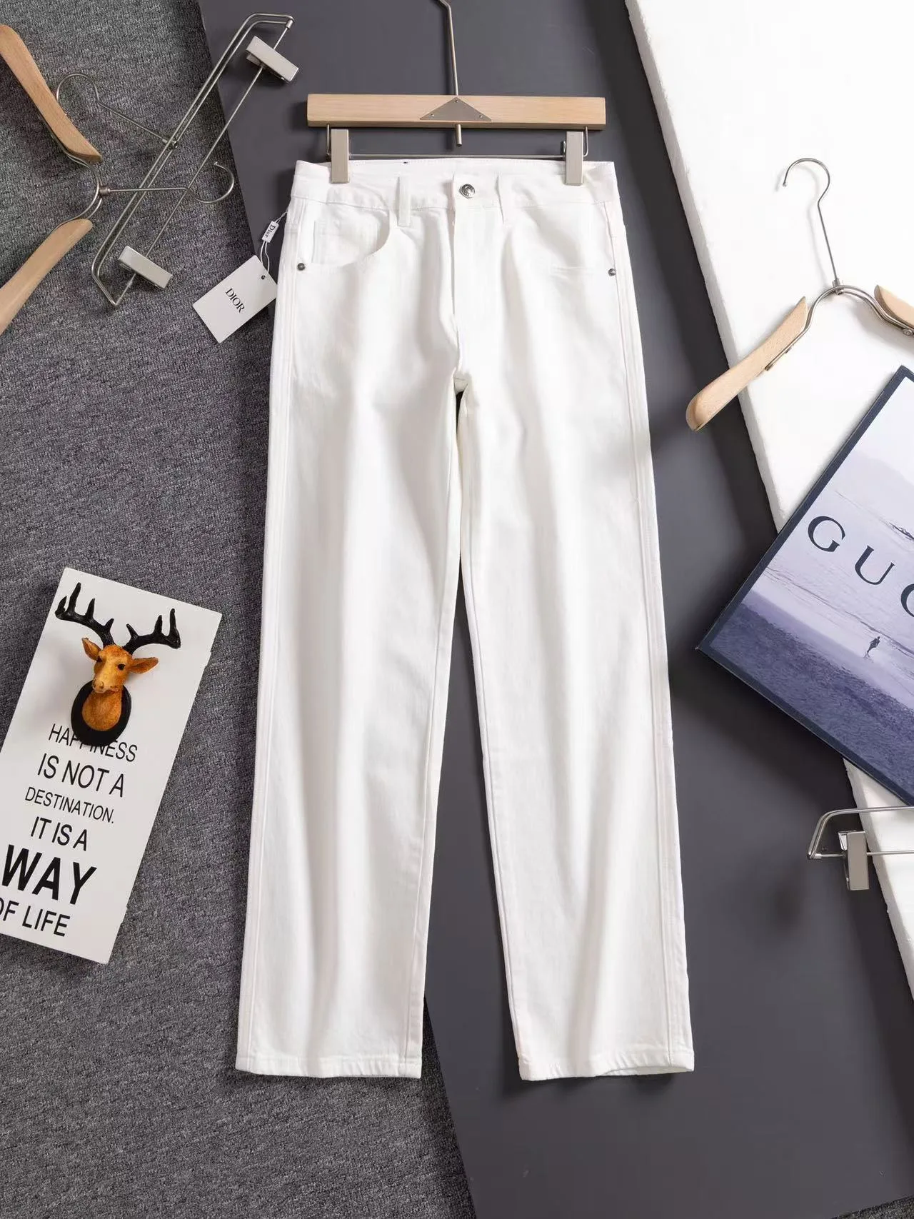 Dior Jeans aus hochwertiger Baumwolle sind in einem hellen, weißen Denim gefertigt, der einen genaueren Blick wert ist.