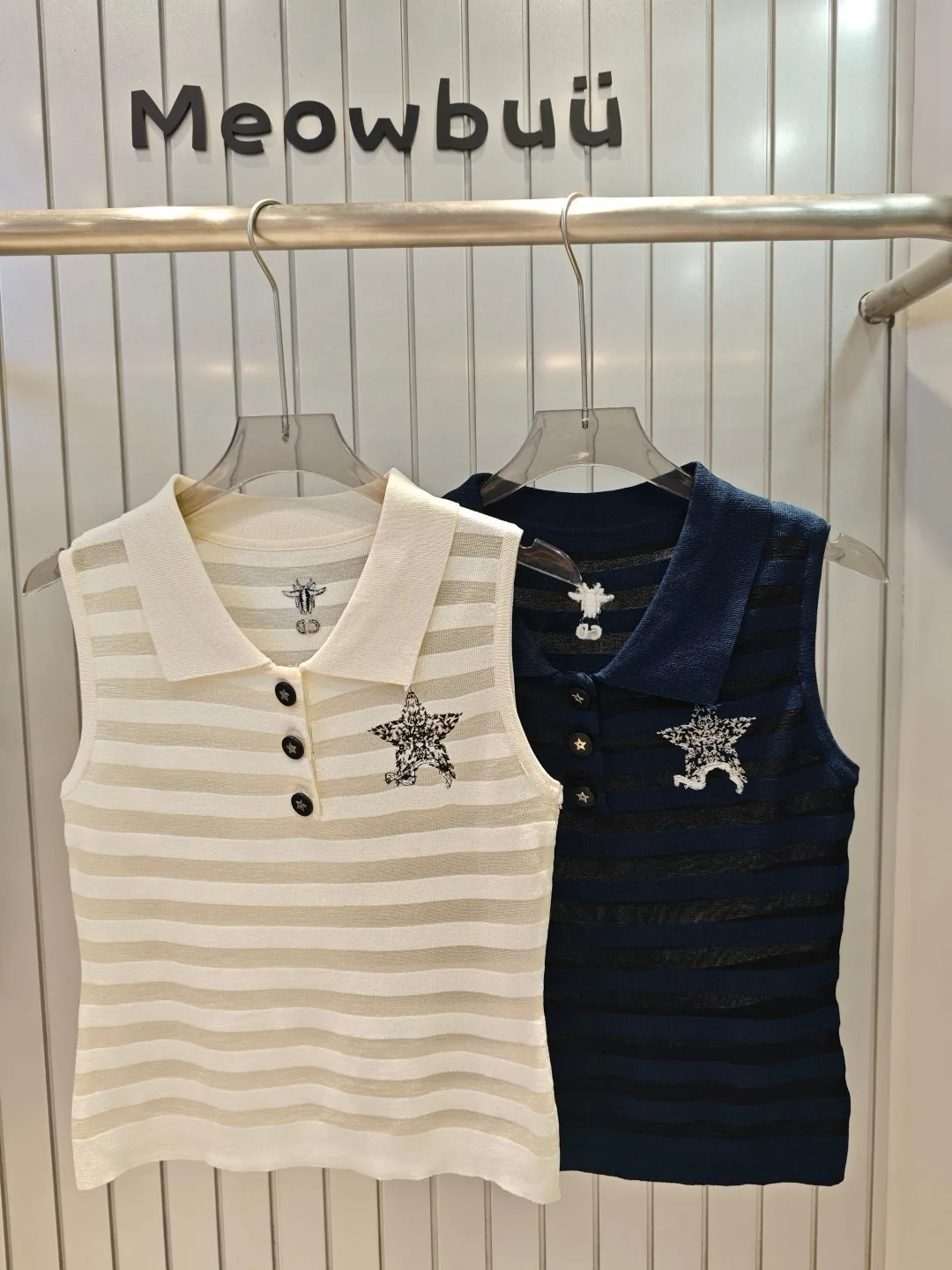 Dior CD Bee Strickweste mit fünfzackiger Sternstickerei, individuell knöpfbarem, gestreiftem Revers
