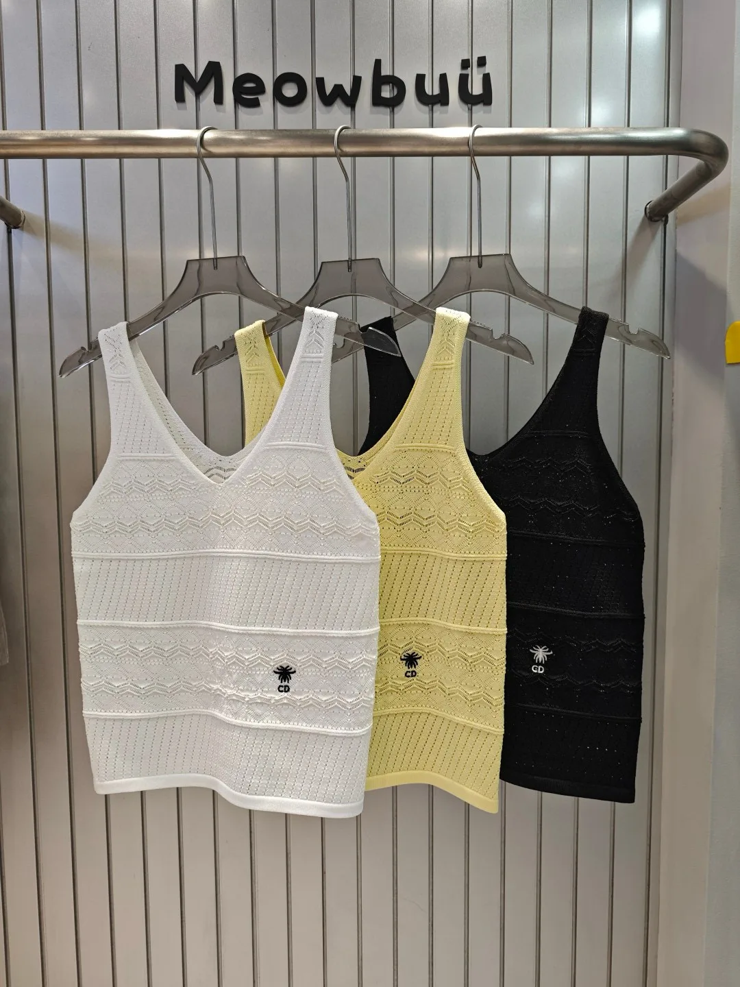 Bestseller Dior Weste Weiß Strick Bestickte Kollektion