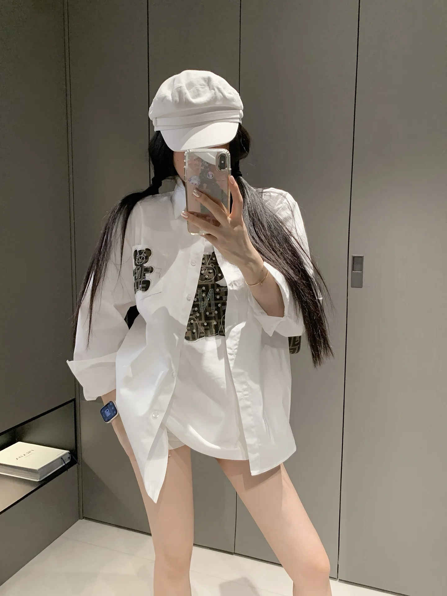 FEND*/Fendi [Jacquard-Hemd mit Strassbär]