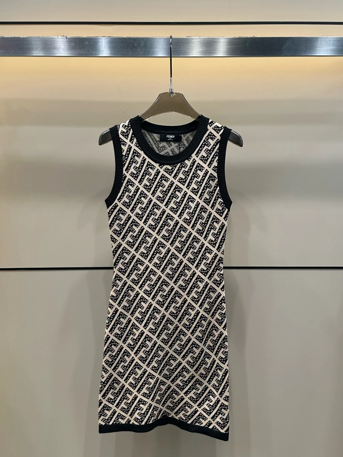 Fendi-Trägerkleid aus Jacquard-Twill mit Doppel-F-Monogramm