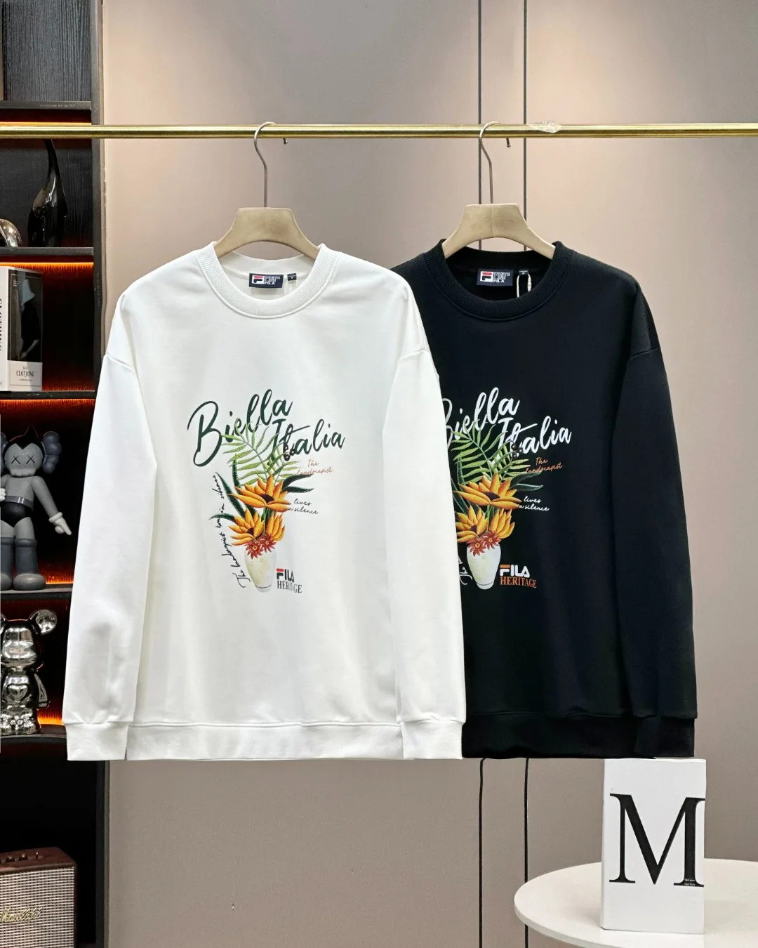 FILAs neuestes Frottee-Sweatshirt mit botanischem Motiv und Rundhalsausschnitt – ein lässiger Pärchen-Style. Premium-Edition.