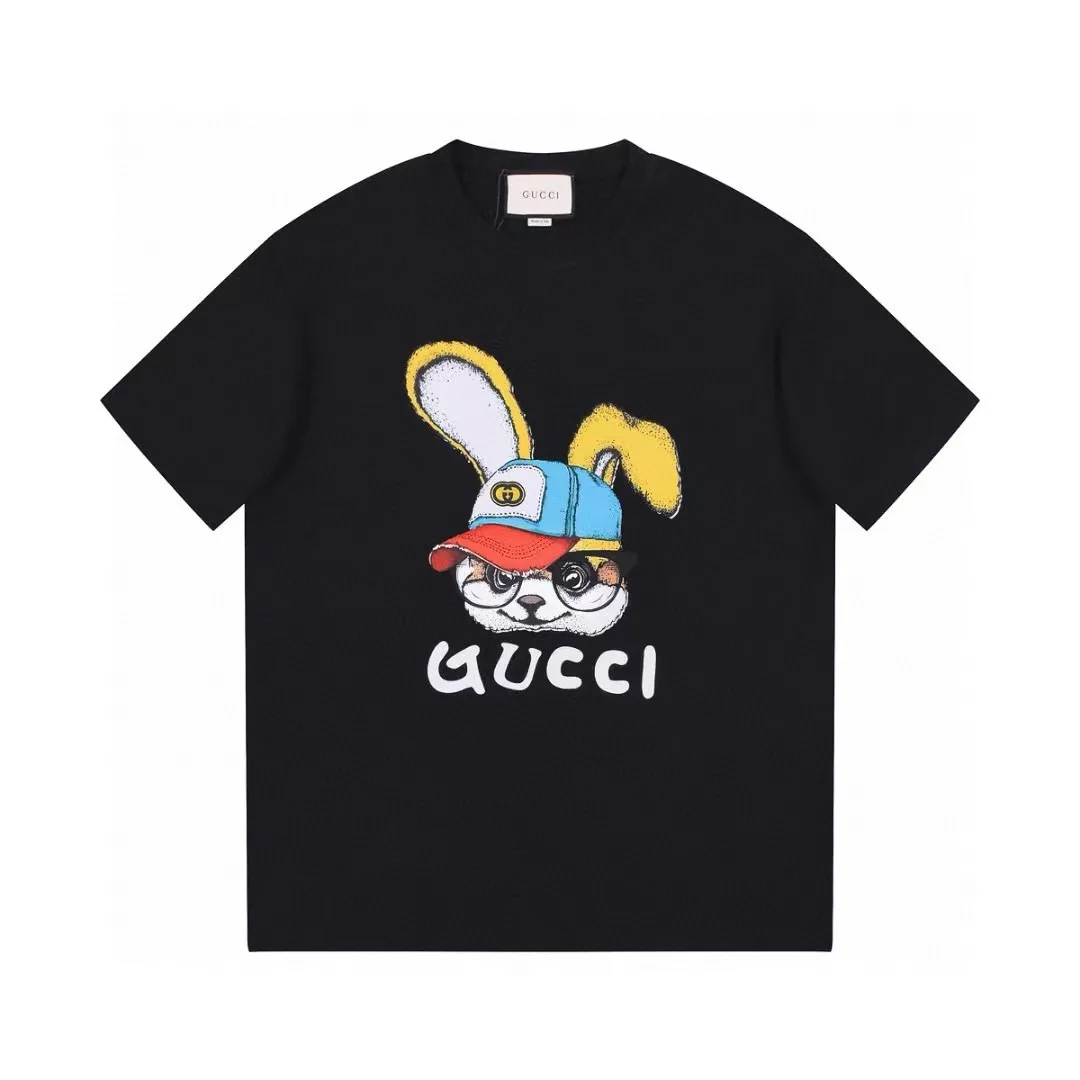 GDucci/Gucci H/W Frühjahr/Sommer Limited Edition Kurzarmshirt mit Hasenprägung. Mit verspieltem Hasenmotiv und geprägtem Schriftzug auf der Brust. Aus hochwertiger, dicht gekämmter Baumwolle. Unisex.