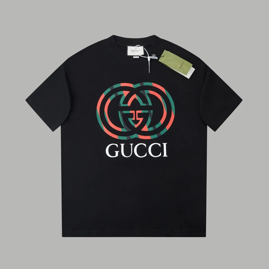 Gucci GDUCCI GDC SS Frühjahrskollektion. Klassisches Kurzarm-Top mit rotem und grünem Doppel-GD-Print.