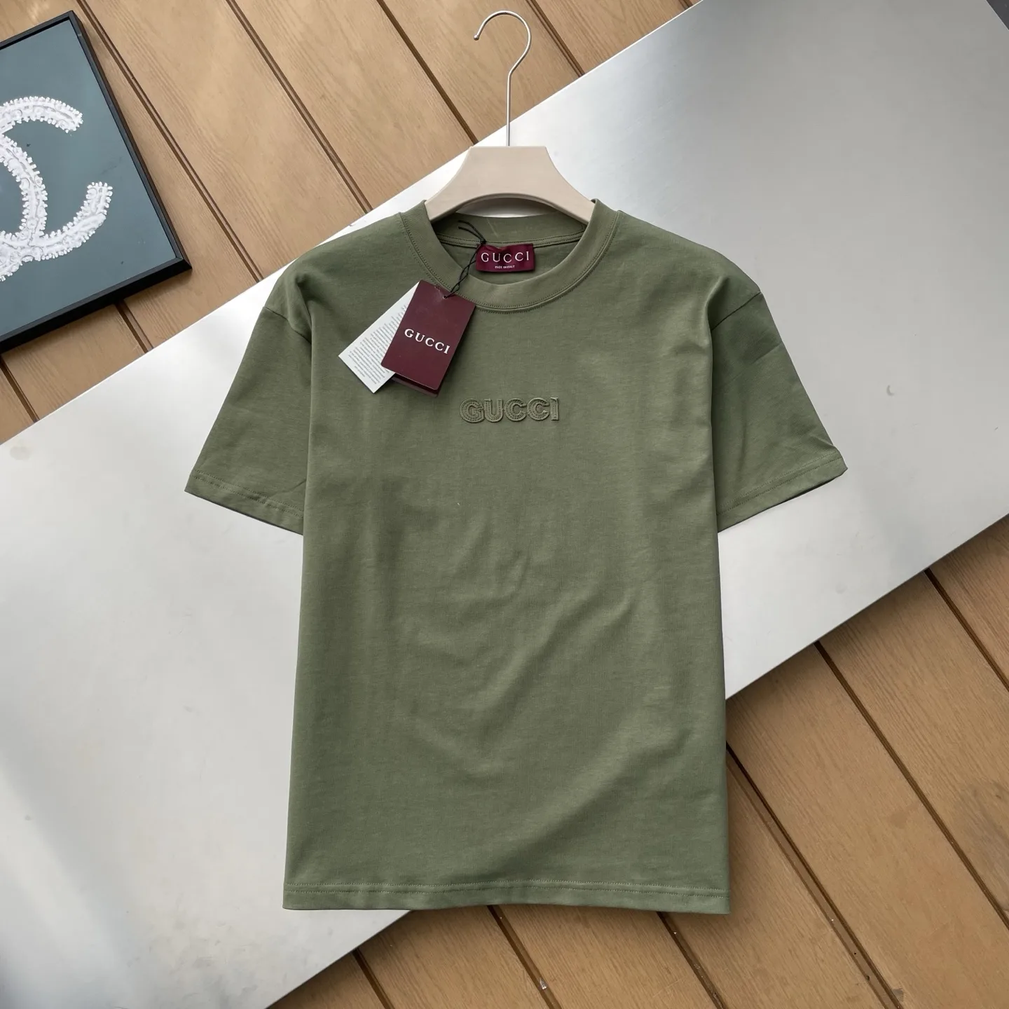 Eine hochwertige Replik des neuen Gucci Kurzarm-T-Shirts dieses Sommers mit klassischen Monogramm-Applikationen.