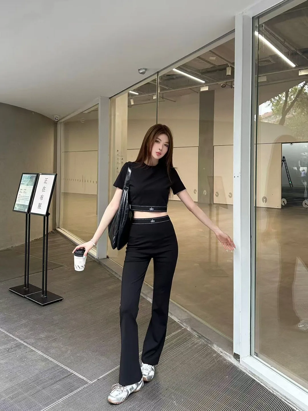 Das neue Set von ALO ist da. Sehr empfehlenswert. Ein kurzärmliges Oberteil mit Rundhalsausschnitt und eine Schlaghose. Mit Webband und Monogrammen. Hervorragende Passform.