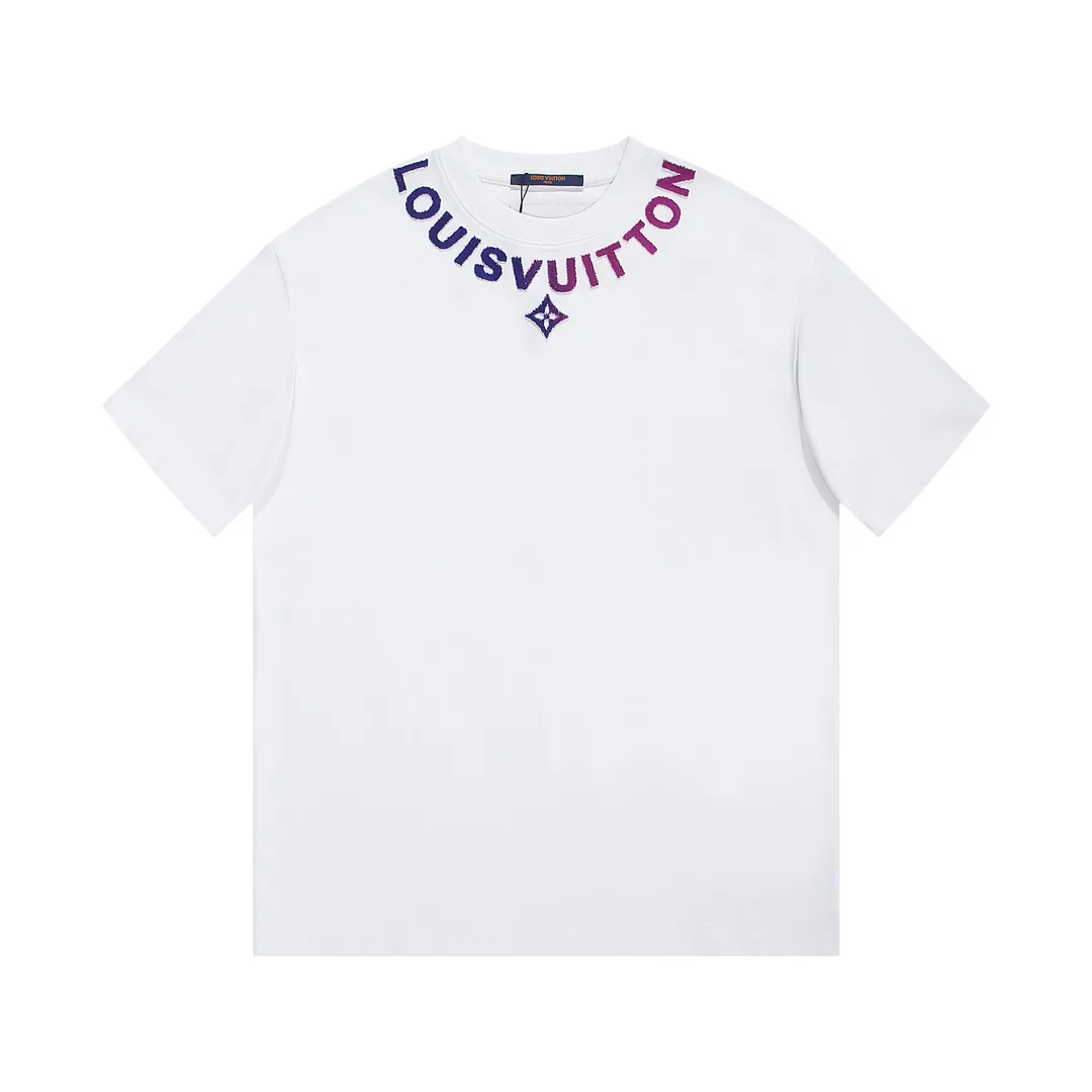 (Spitzenqualität) LV Louis Vuitton Klassische Halskette mit Zahnbürsten-Stickerei, Kurzarm-T-Shirt