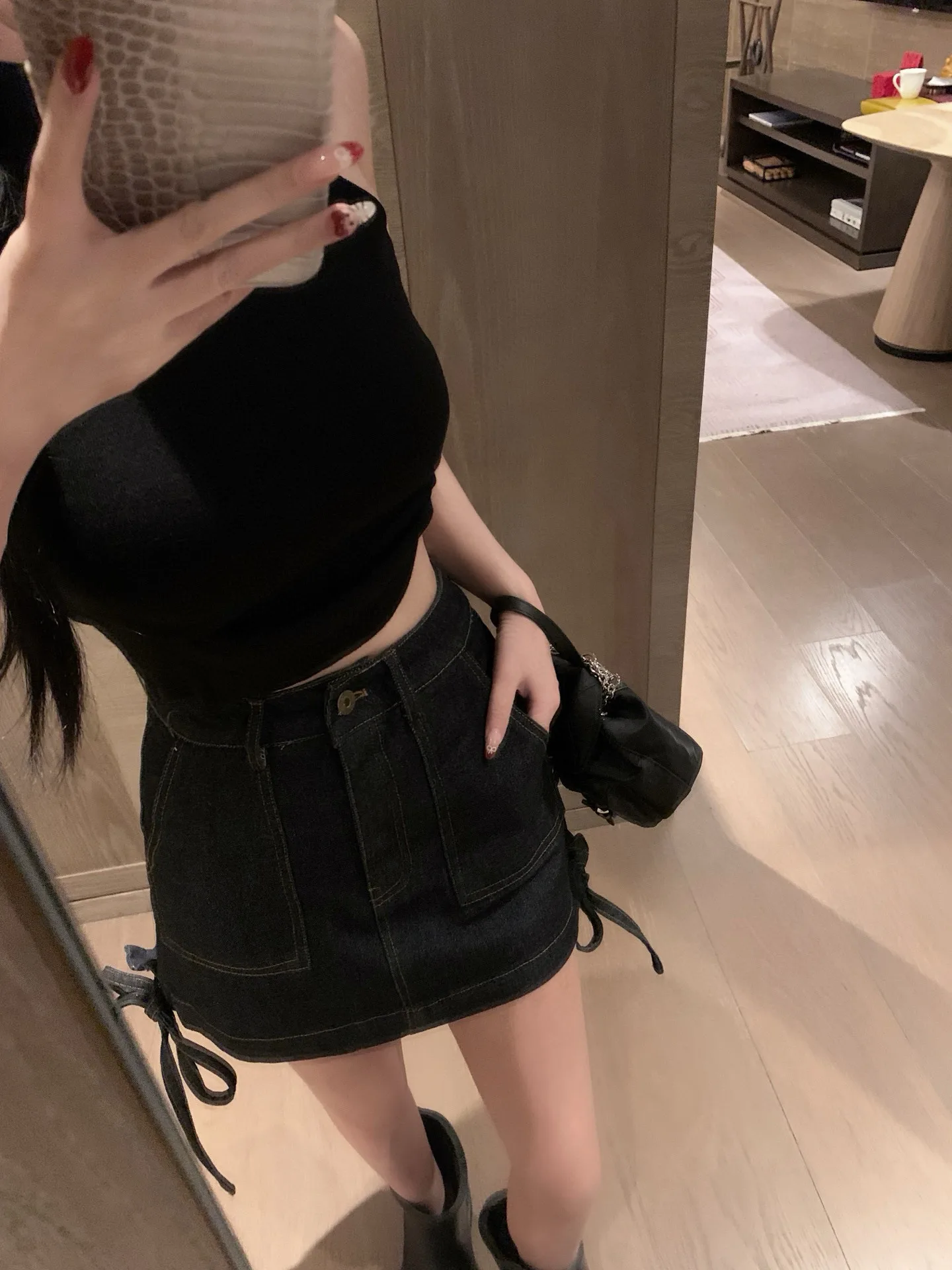 Bestseller: Kurzer Rock von Loewe in schwarzem Leder mit Logo-Print