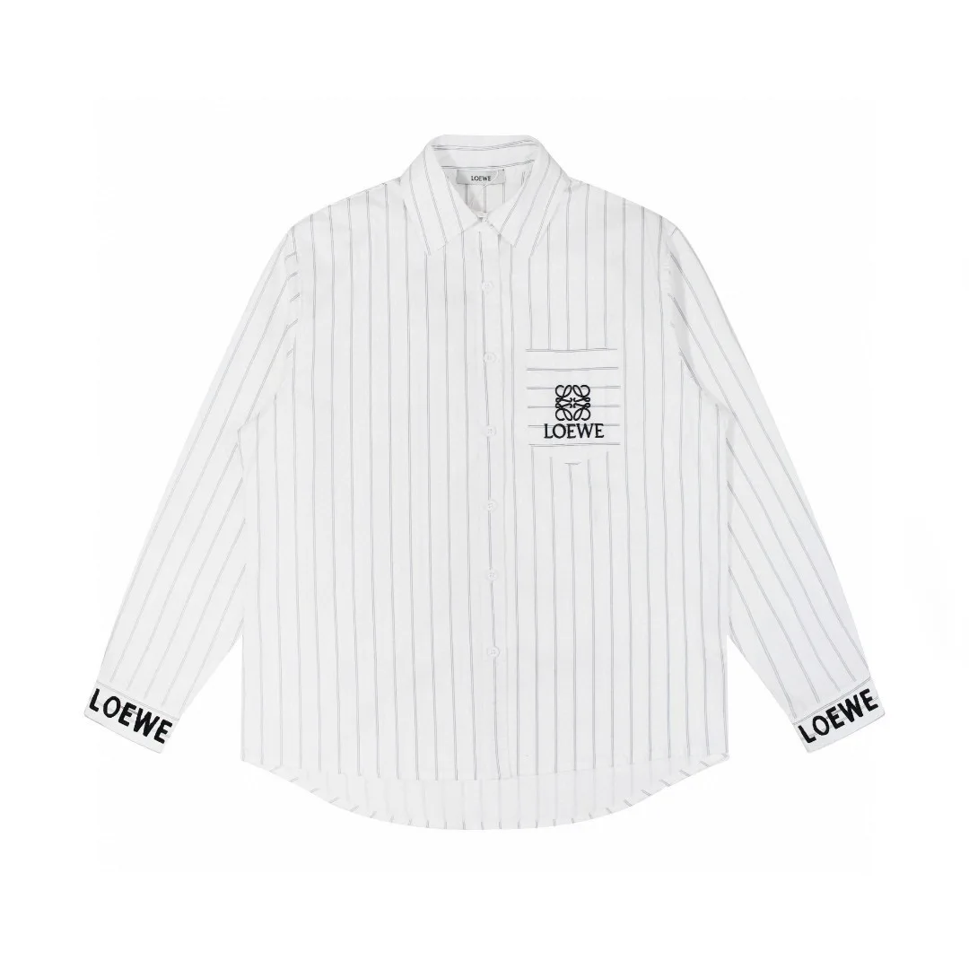LOEWE Hemd mit grauem Streifenmuster und Stickerei