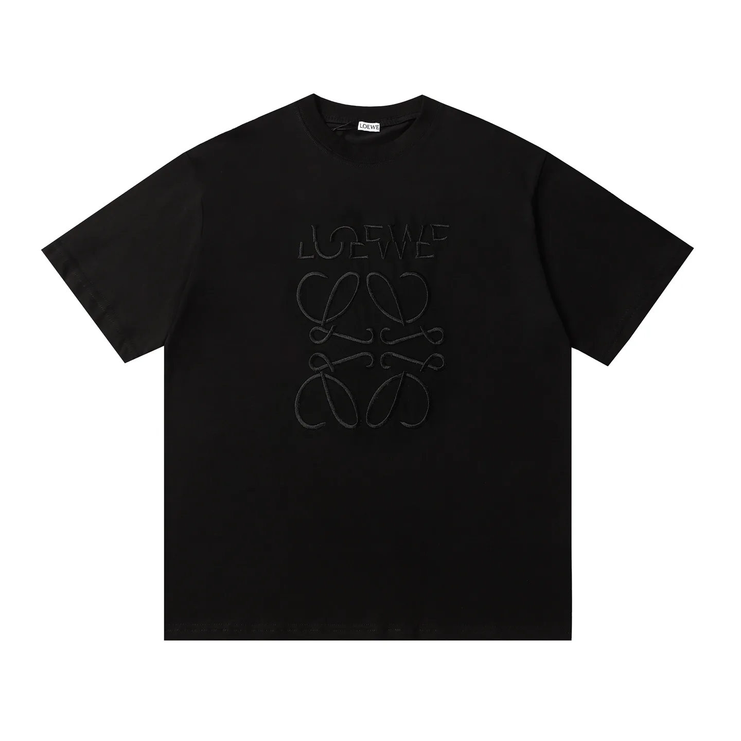 Die neue Frühjahrskollektion von Loewe präsentiert ein locker sitzendes Kurzarm-T-Shirt mit unregelmäßiger Stickerei auf der Vorderseite. Hergestellt aus feiner Baumwolle in Leinwandbindung mit einem Gewicht von 100 g. Die Stickerei erfolgt mit einem Flachstich, wobei die Fäden in einem Muster und einer Technik angeordnet sind. Flachstichstickerei zeichnet sich durch eine glatte, feine Oberfläche und eine saubere, gleichmäßige Fadenanordnung aus. Nach der Stickerei sind abschließende Schritte wie Fadenschneiden und Bügeln erforderlich, um die Ästhetik des Kleidungsstücks zu verbessern.