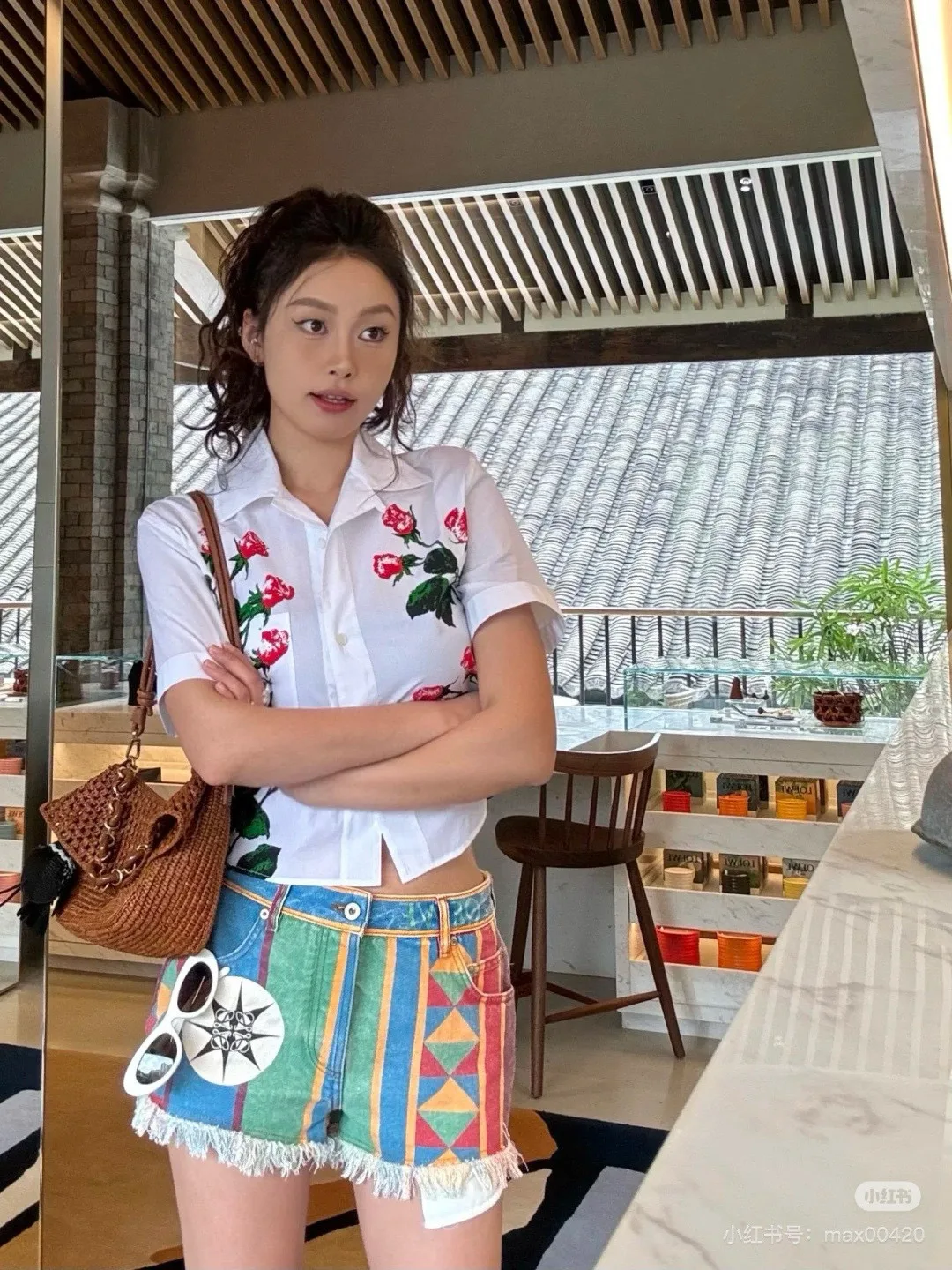 LOEW*/Loewe [Ethnic Totem Raw-Edge Denim Shorts]