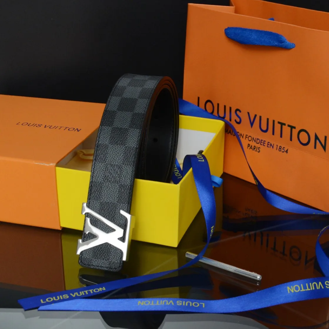 Louis Vuitton/Louis Vuitton LV – Neuer Ledergürtel mit Schachbrettmuster