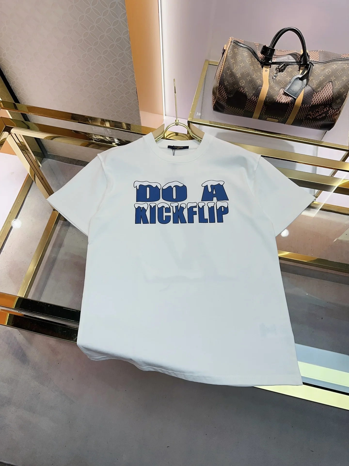 (Spitzenmodell, hochwertigste Ausführung) LV Louis Vuitton Classic Snow Pattern Print Lettering Kurzarm-T-Shirt
