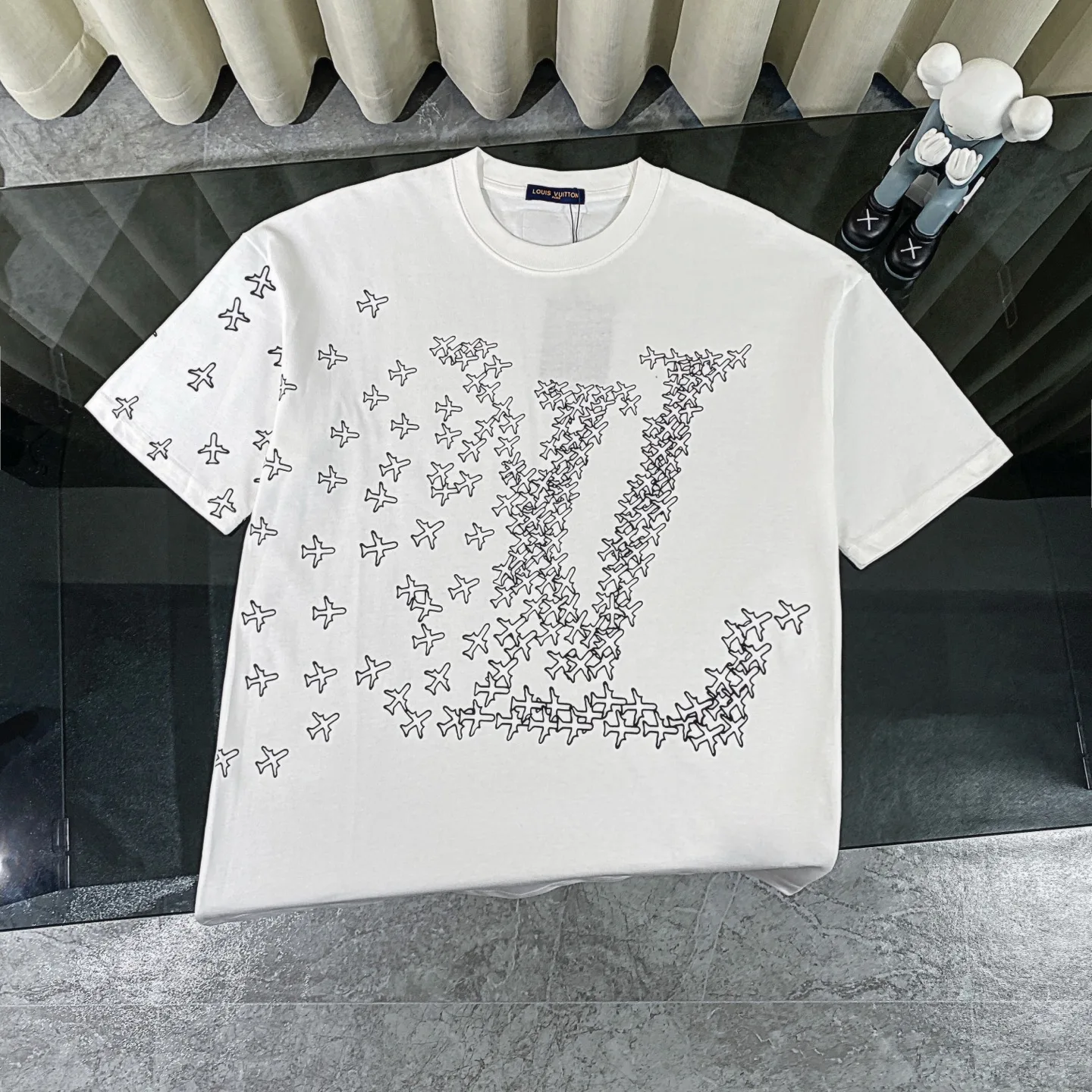 LOUIS VUITTON/Louis Vuitton: Neues Sommer-T-Shirt mit Rundhalsausschnitt und kleinem Flugzeug-Logo-Print.