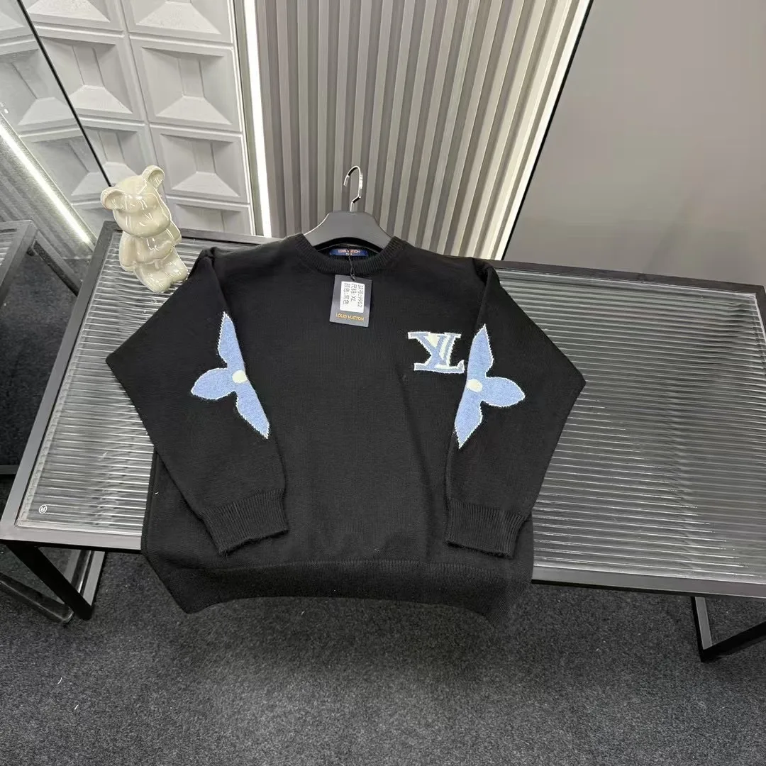 Empfohlene neue Pullover: Louis Vuittons Rundhalspullover mit dem Drei-Blumen-Logo und Monogramm. Alle drei Logos sind identisch mit denen auf der offiziellen Website. Zoomen Sie hinein, um Details zu sehen. Foto mit der Originalkamera aufgenommen.