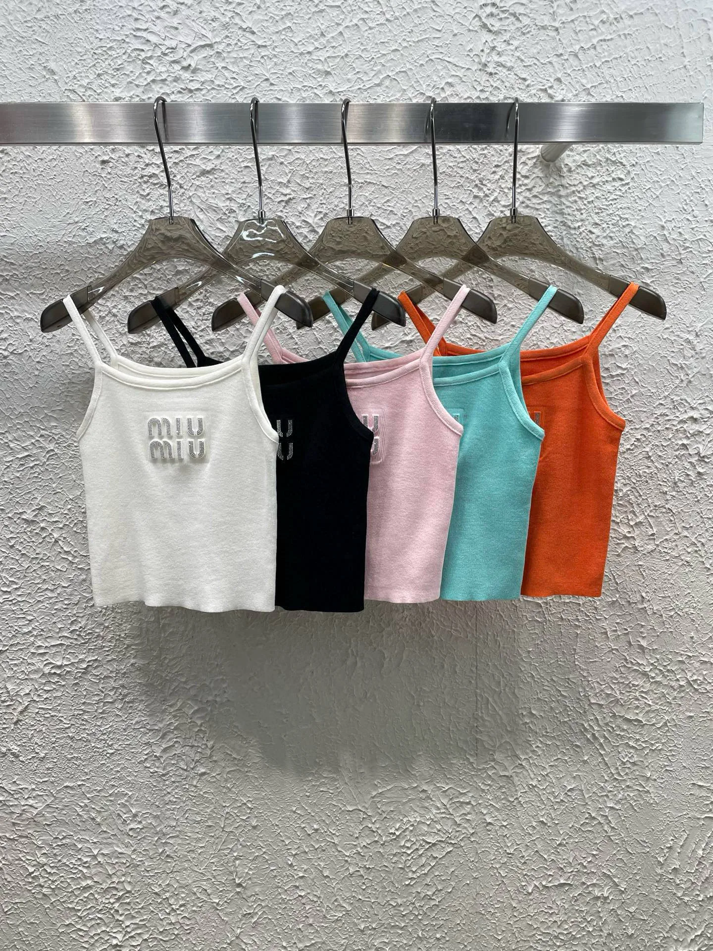 Miumiu Miu Miu Strick-Camisole mit Strass-Prägung und 3D-Schriftzug