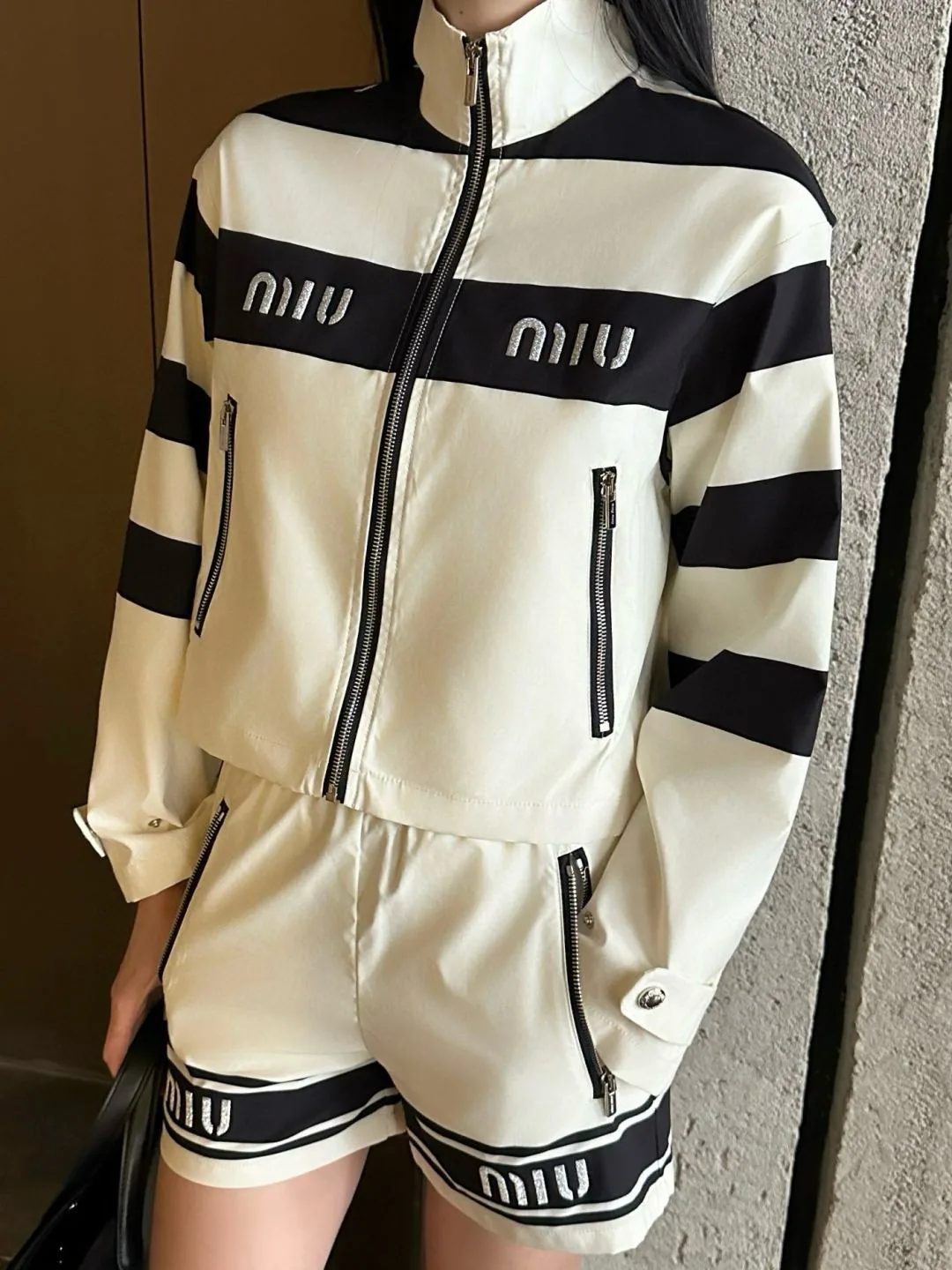 MIU MIU/Miu Miu [Set aus Shorts und Jacke mit Monogramm-Stickerei in Colorblock-Optik]