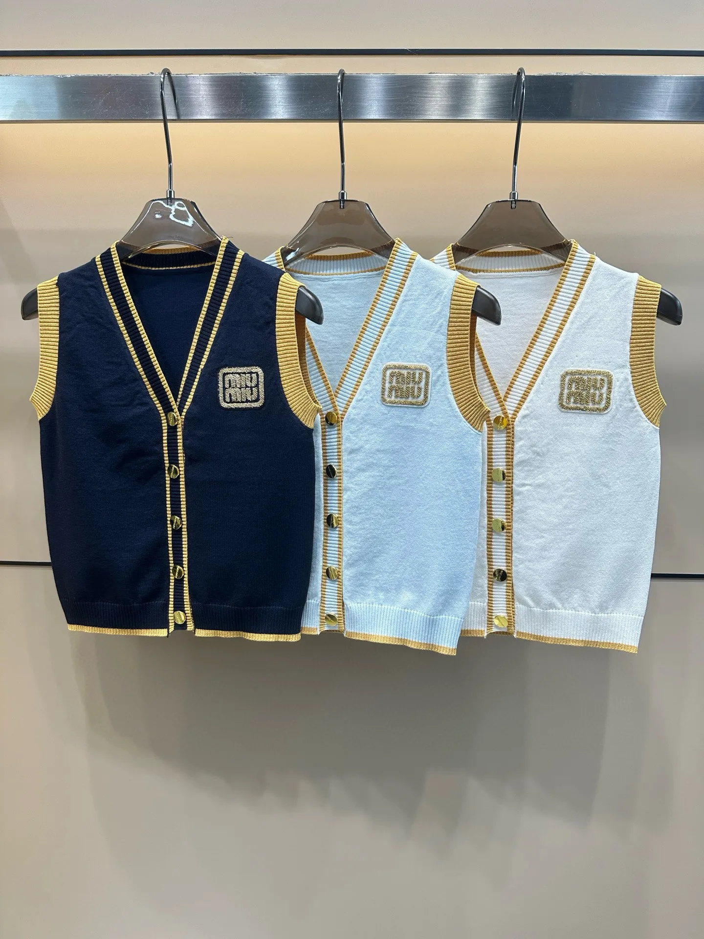 Bestseller Miu Miu Weste Gold Strick Bestickte Kollektion