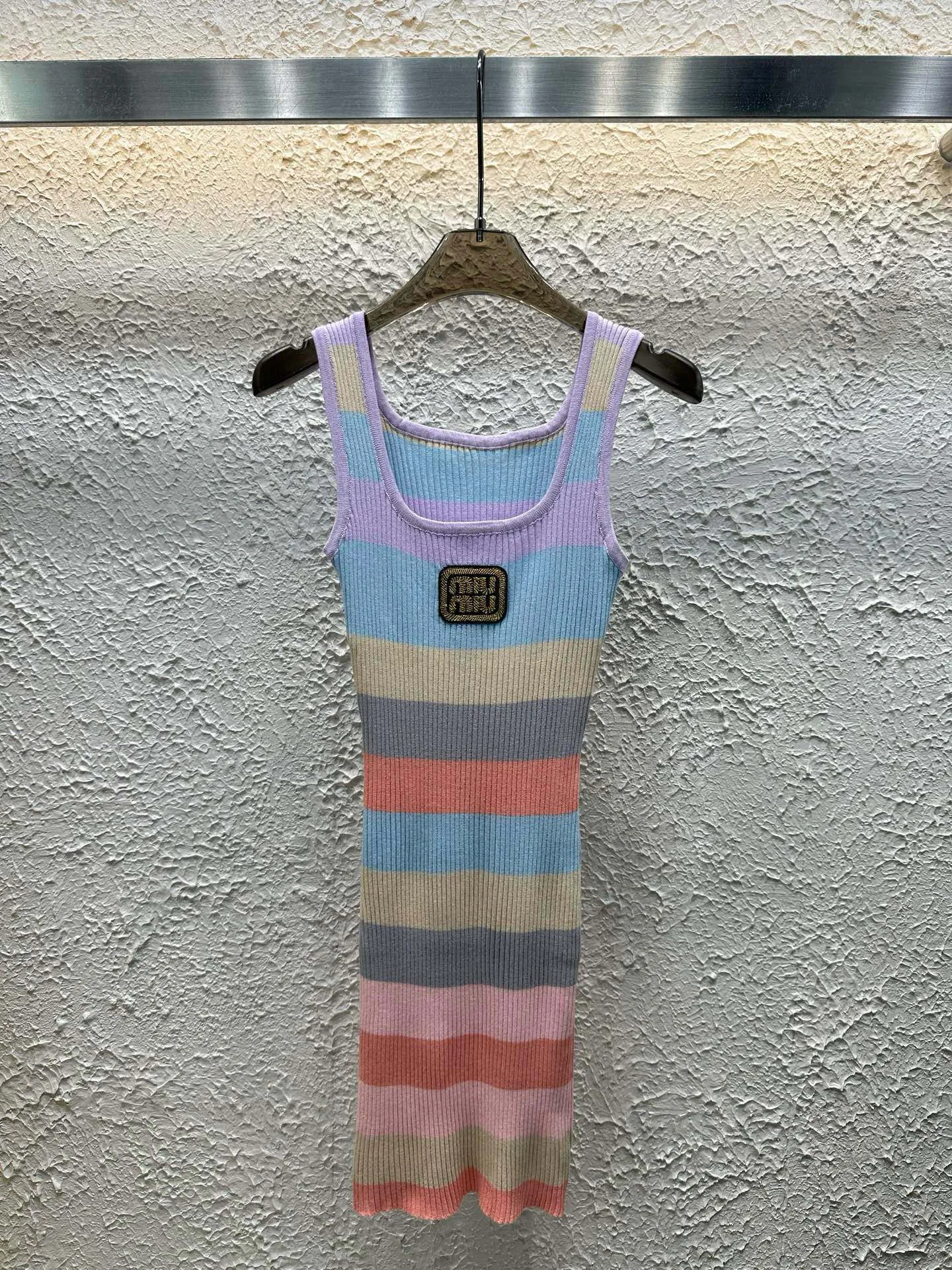 Miumiu Strickwestenkleid mit individuellem Buchstabenblock-Stickerei-Abzeichen und Colorblock-Muster