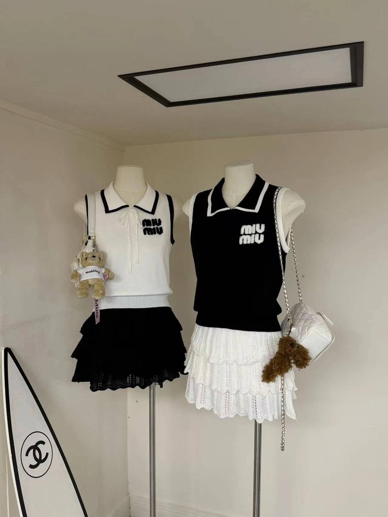 Bestseller Miu Miu Weste Weiß Strick Bestickte Kollektion