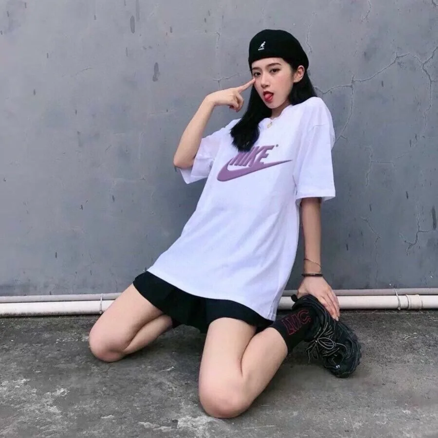 NlKE Nike Taro Lila Bubble Print Retro Classic Nike Logo Couple Loose Kurzarm-T-Shirt