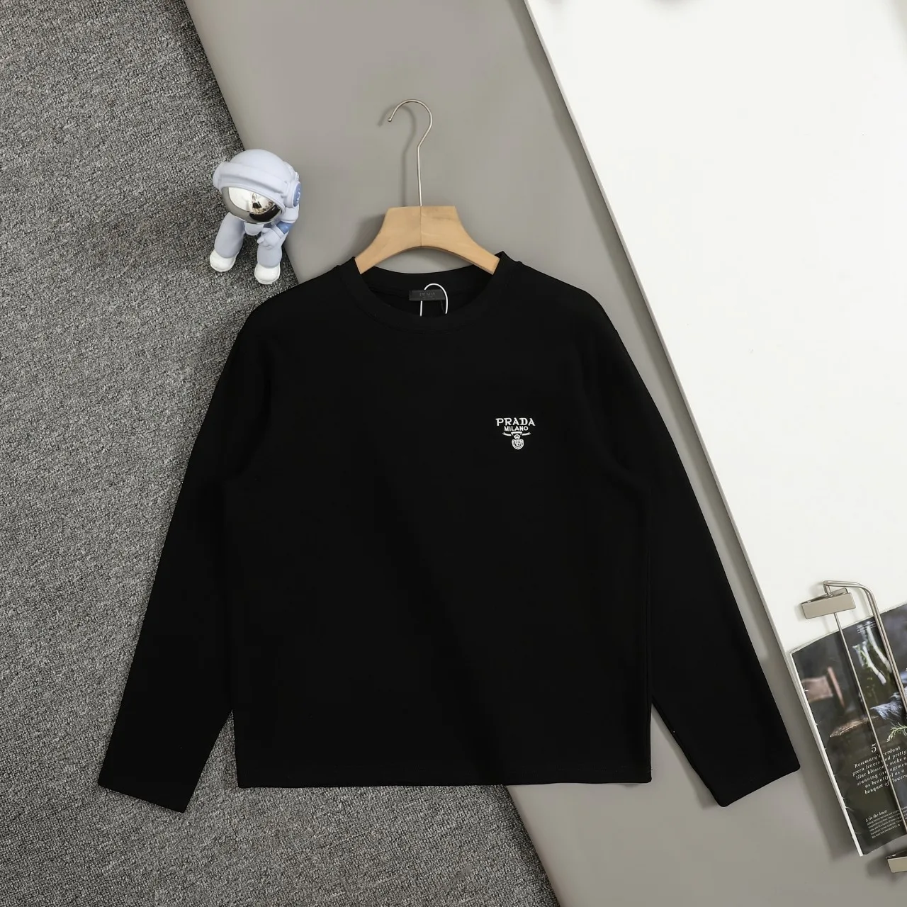 Pradas neues Herbst/Winter-Shirt mit gesticktem Rundhalsausschnitt und Schriftzug ist ein vielseitiges, sportliches Unisex-Paar-Top.