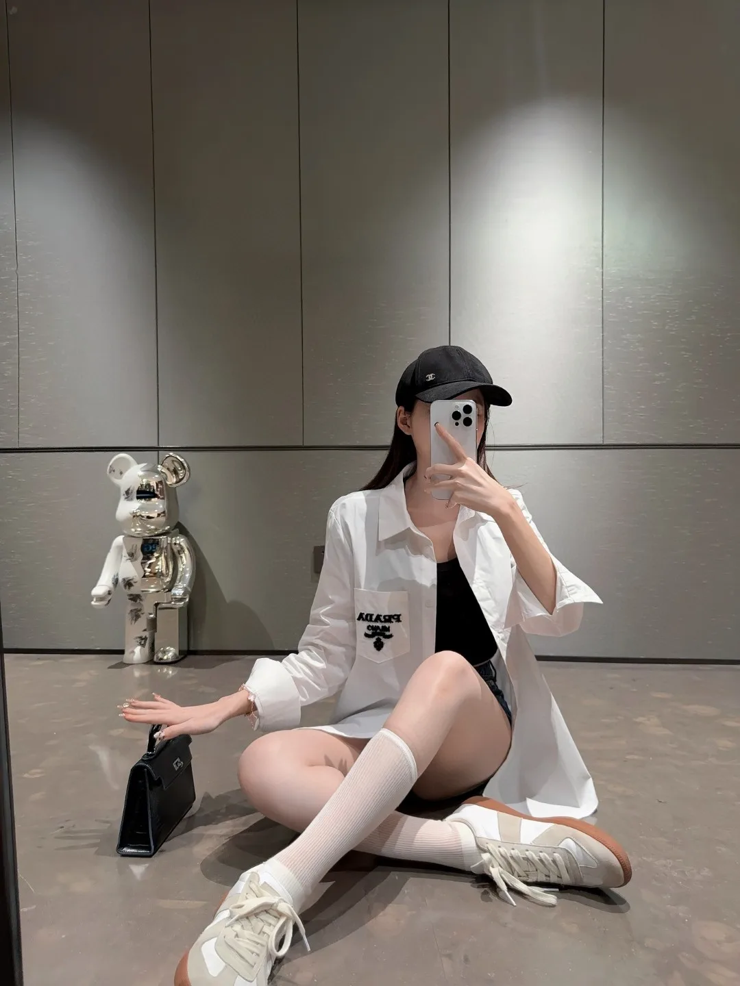 Neu erschienen: Pradas neues Kurzarmhemd. Ein schönes, klassisches weißes Hemd! Veredelt mit einem 3D-Zahnbürsten-Stickerei-Abzeichen. Dieses stilvolle und raffinierte Kleidungsstück ist ein Must-have für junge Frauen! Das 3D-Design ist vielseitig und passt zu jedem. Der importierte Hemdstoff aus reiner Baumwolle hat eine unglaublich feine Struktur! Sehr empfehlenswert! Die hochwertige Verarbeitung spiegelt sich in den Details wider.