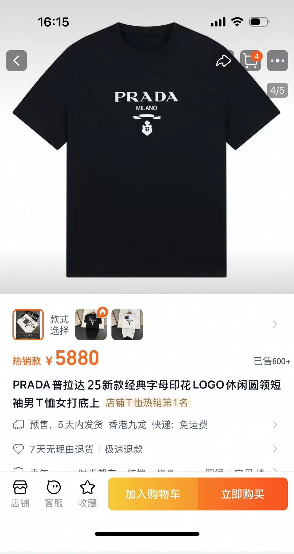 /Prada Herren-T-Shirt mit Rundhalsausschnitt und kurzen Ärmeln, Unisex.